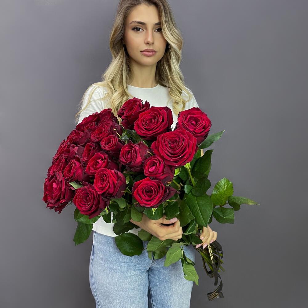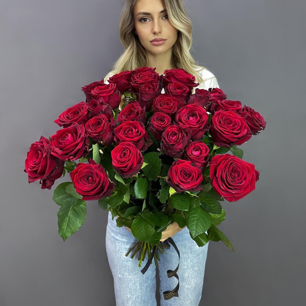 Букет из 30 красных роз сорта Red Naomi - это роза идеального красного цвета с нежным, бархатистым оттенком. Это единственная красная роза с большим соцветием, имеющая тонкий, неповторимый аромат роз. Бережно соберем букет лентой или упакуем в крафт и доставим по адресу. Добавим открытку с текстом по желанию.