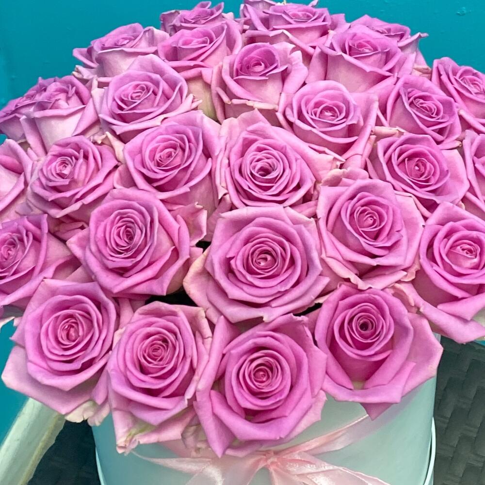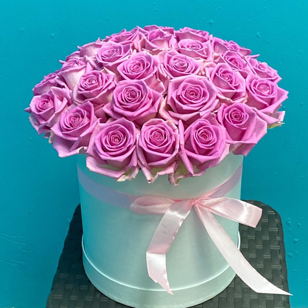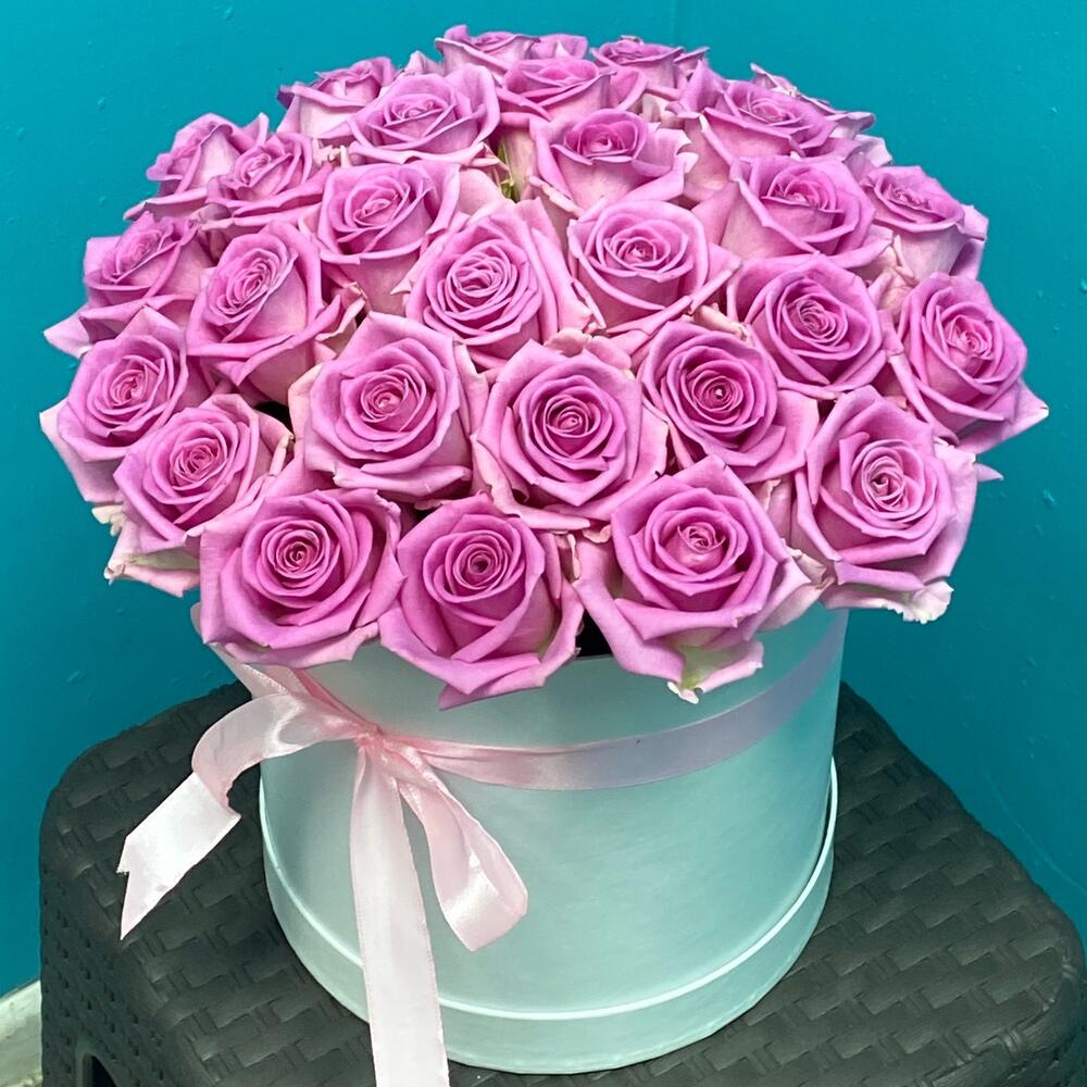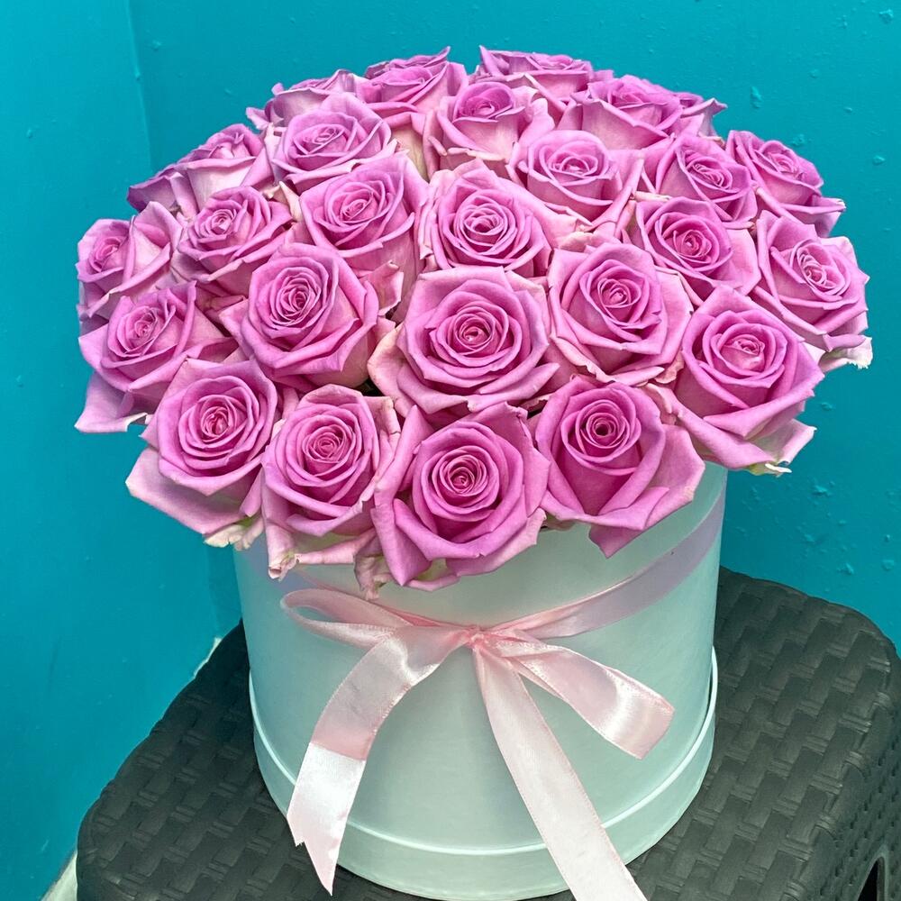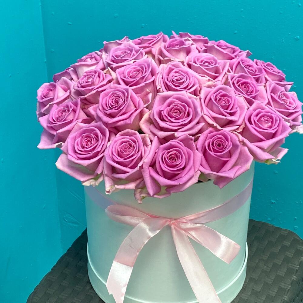 Роза аква - 31 шт. Коробка шляпная - 1 шт. Оазис флористический - 2 шт.