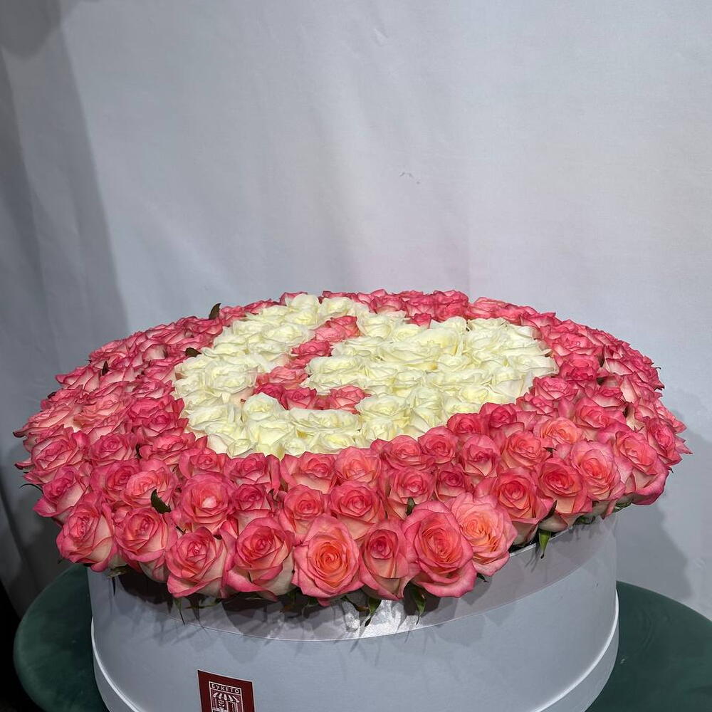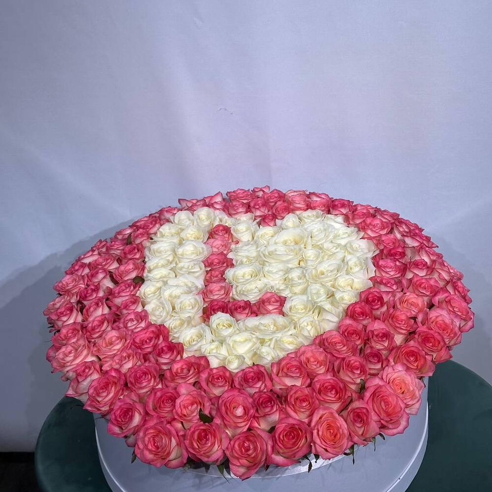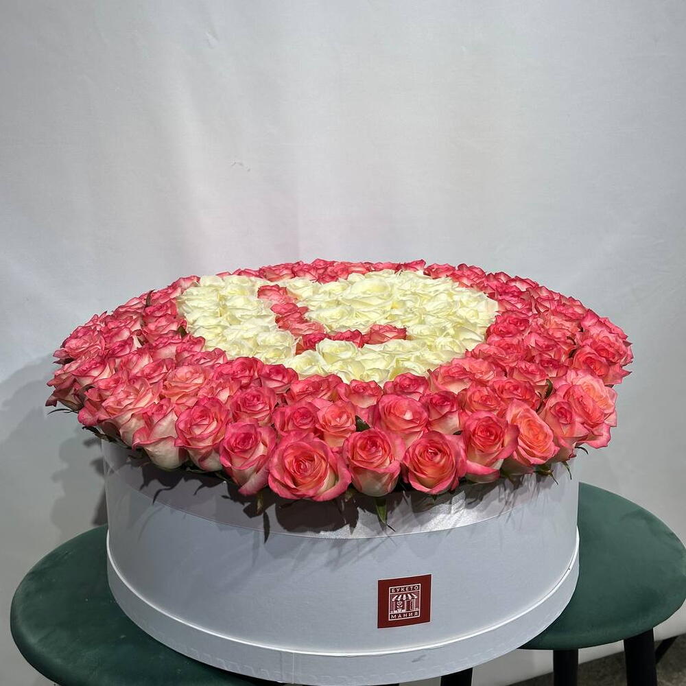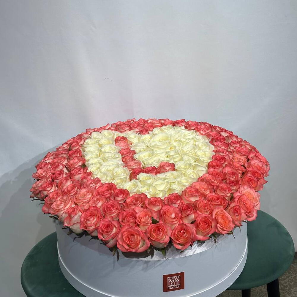 Розы в коробке в виде сердца с буквой