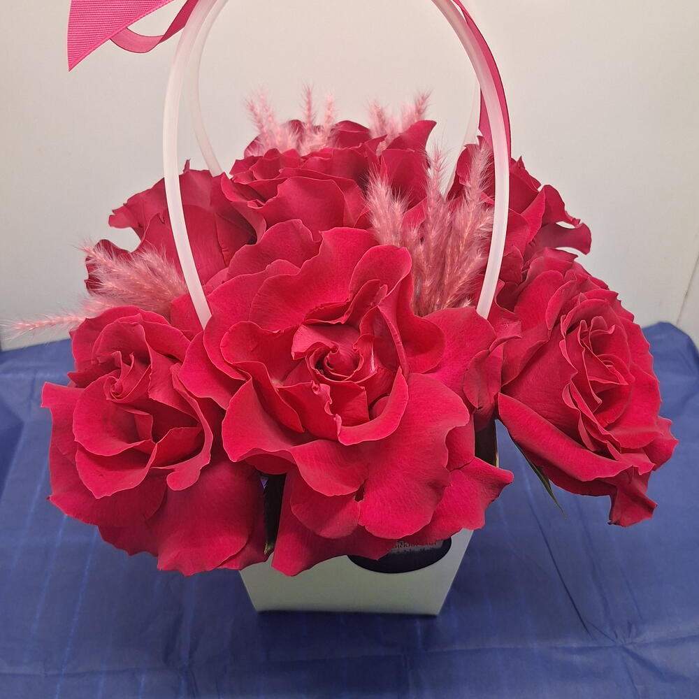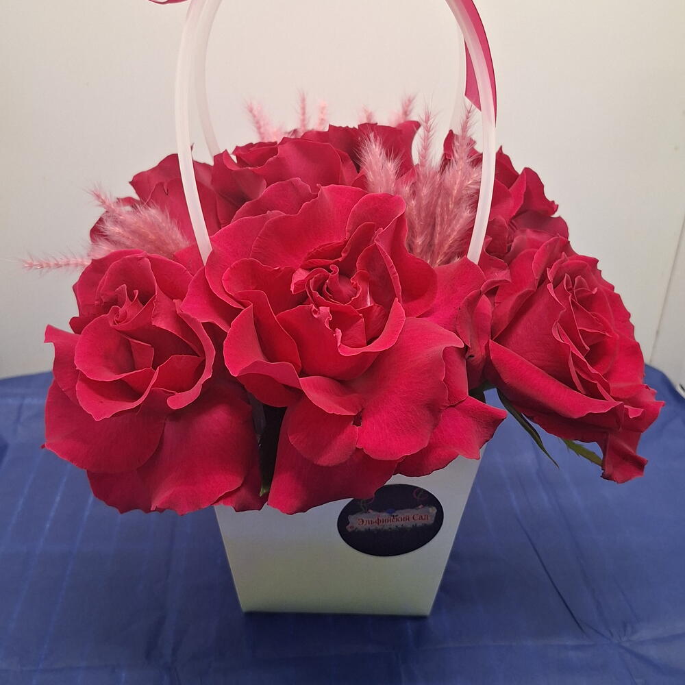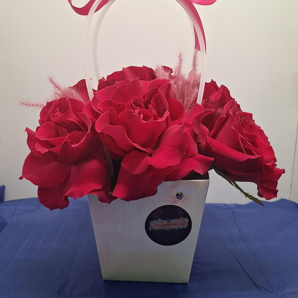 Сумочка - 1 шт. французская роза full monty - 7 шт. сухоцвет пампасная трава темно-розовая - 3 шт.