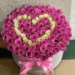 Роза - 101 шт. Коробка шляпная - 1 шт. Оазис флористический - 8 шт.