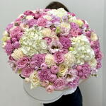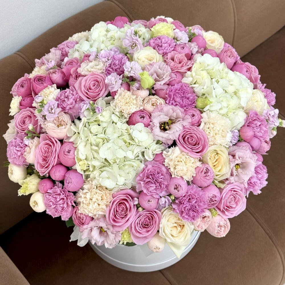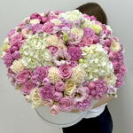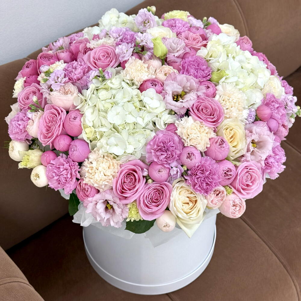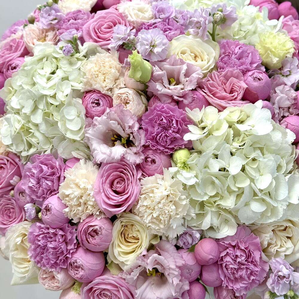 Шикарная композиция с премиальными пионовидными розами, белоснежными гортензиями и ароматной маттиолой💕 Используем только качественные и свежие цветы 👍🏻 Доставим вовремя и без хлопот 👌🏻