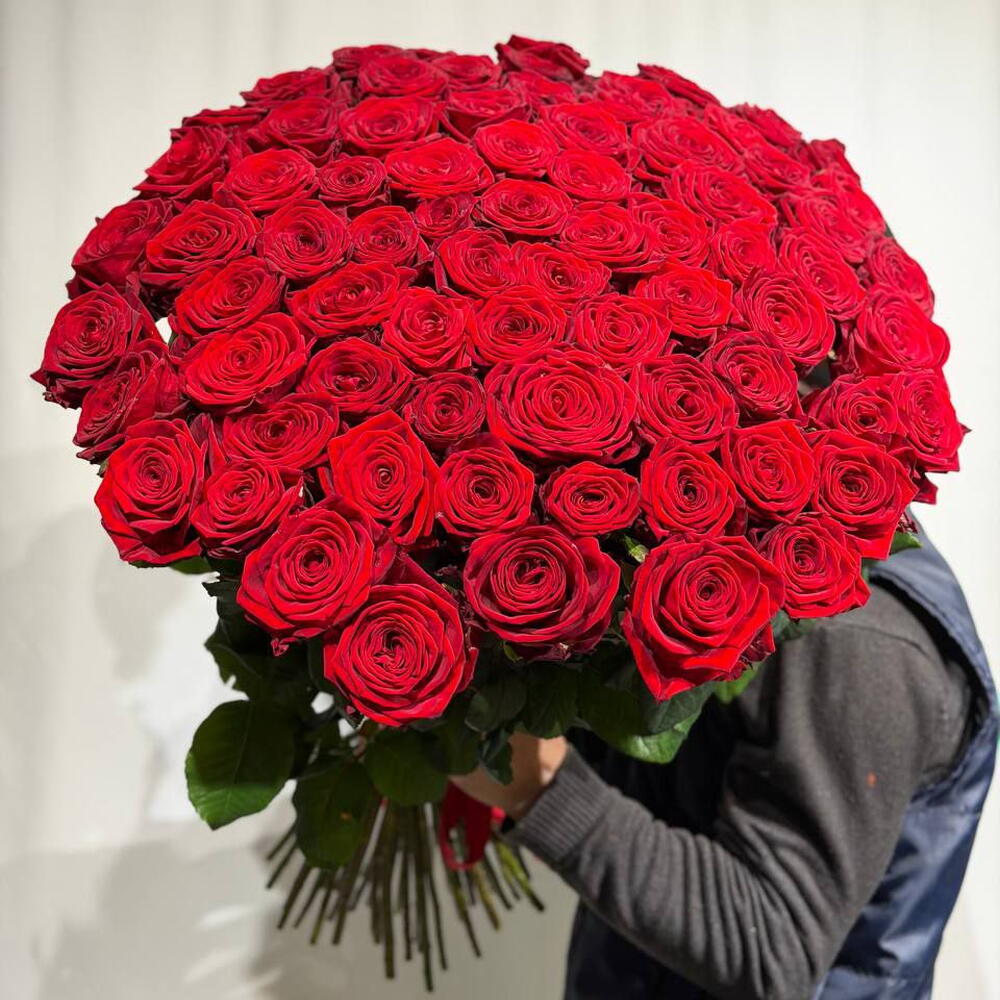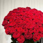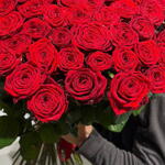Наши преимущества * Личный менеджер, который курирует заказ от начала до вручения * Согласование фото букета перед отправкой и возможность внести изменения по вашему желанию * Дополнительные подарки — сладости, шары, помощь в организации сюрпризов * Красивая упаковка, аквабокс и поздравительная открытка — бесплатно Прекрасный свежий букет из шикарных красных роз в дизайнерской упаковке с быстрой доставкой по городу в течение часа — отличный способ порадовать близкого человека, устроив сюрприз. Такой букет подойдёт ✓ Для любимой девушки или супруги ✓ Для мамы или родных ✓ Для подруги или коллеги на 8 марта или 14 феврал ✓ Для свадебных торжеств и юбилеев