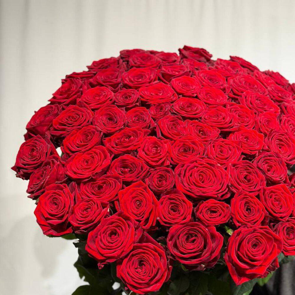 Роза - 101 шт. Атласная лента - 1 шт. открыточка - 1 шт. оформление дизайнерское - 1 шт. быстрая доставка - 100 шт. прекрасное настроение - 100500 шт.