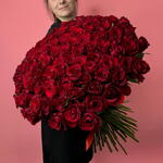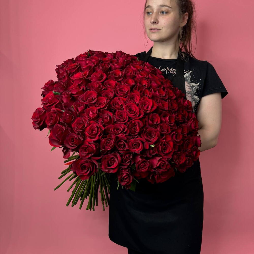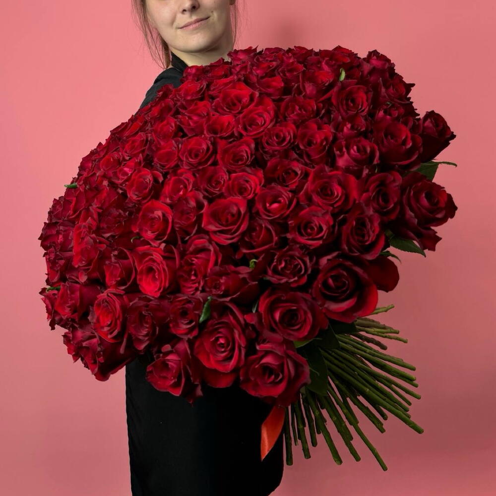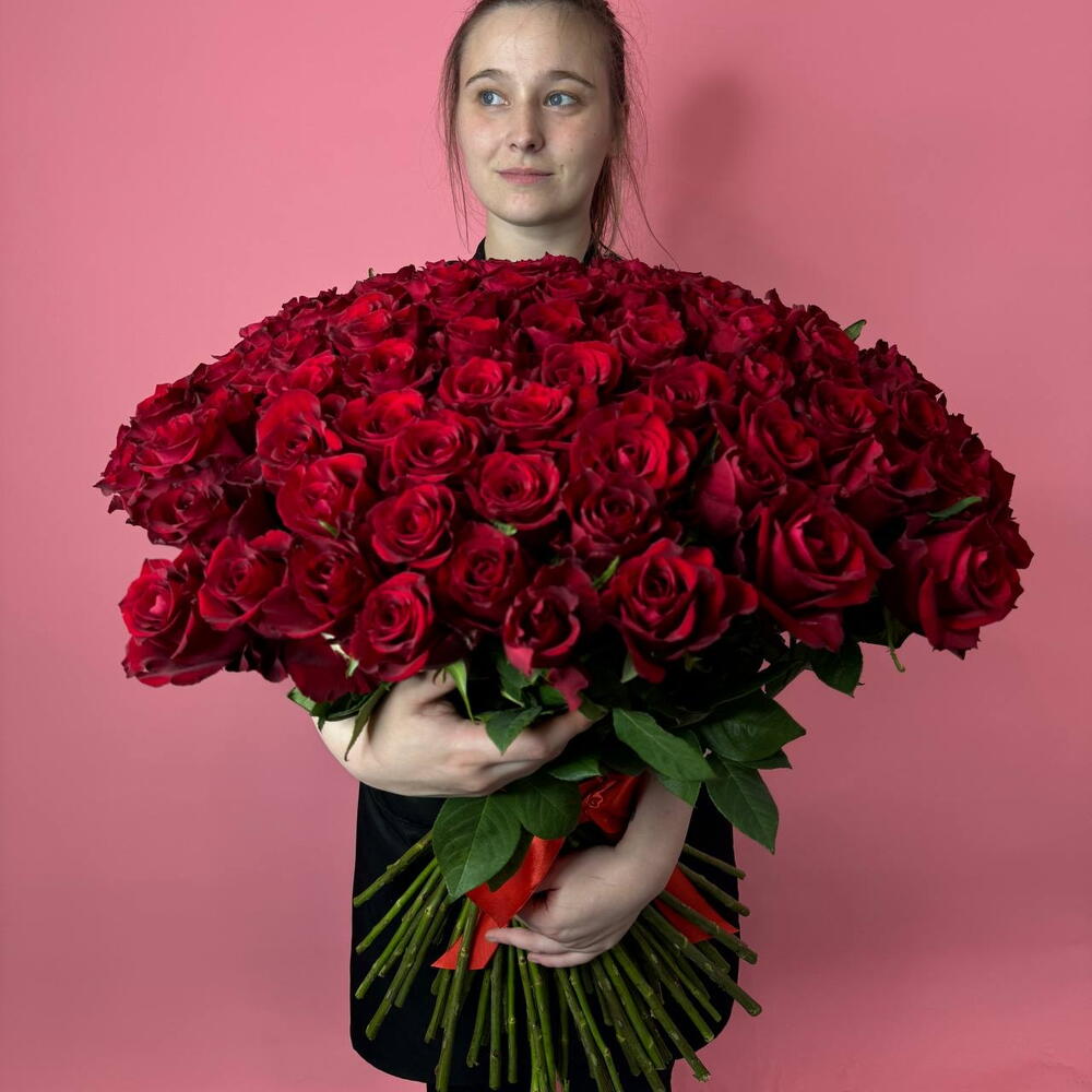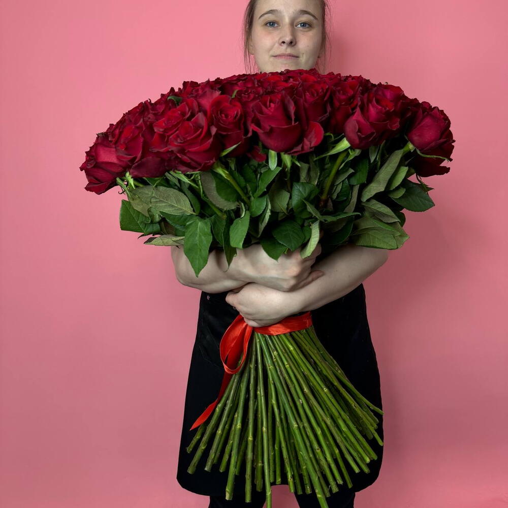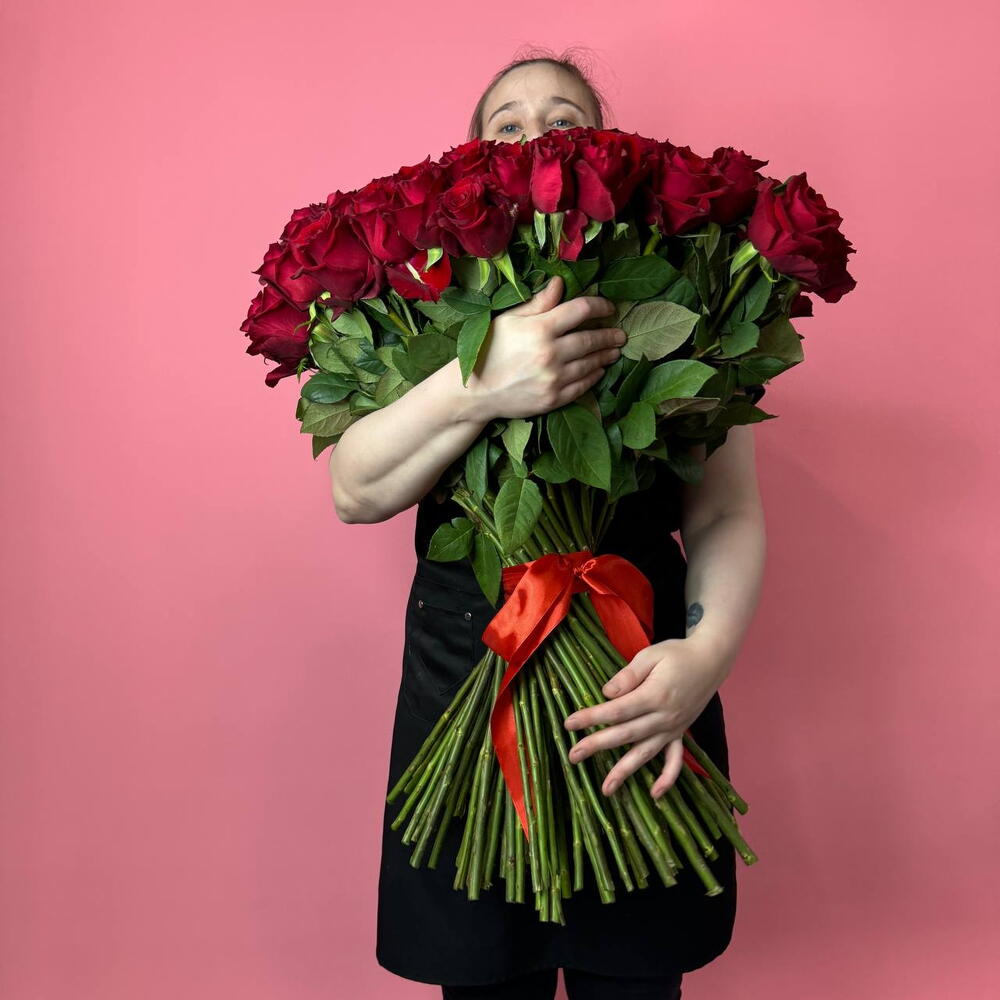 Шикарный огромный букет из 101 красной розы 60 см на 14 февраля