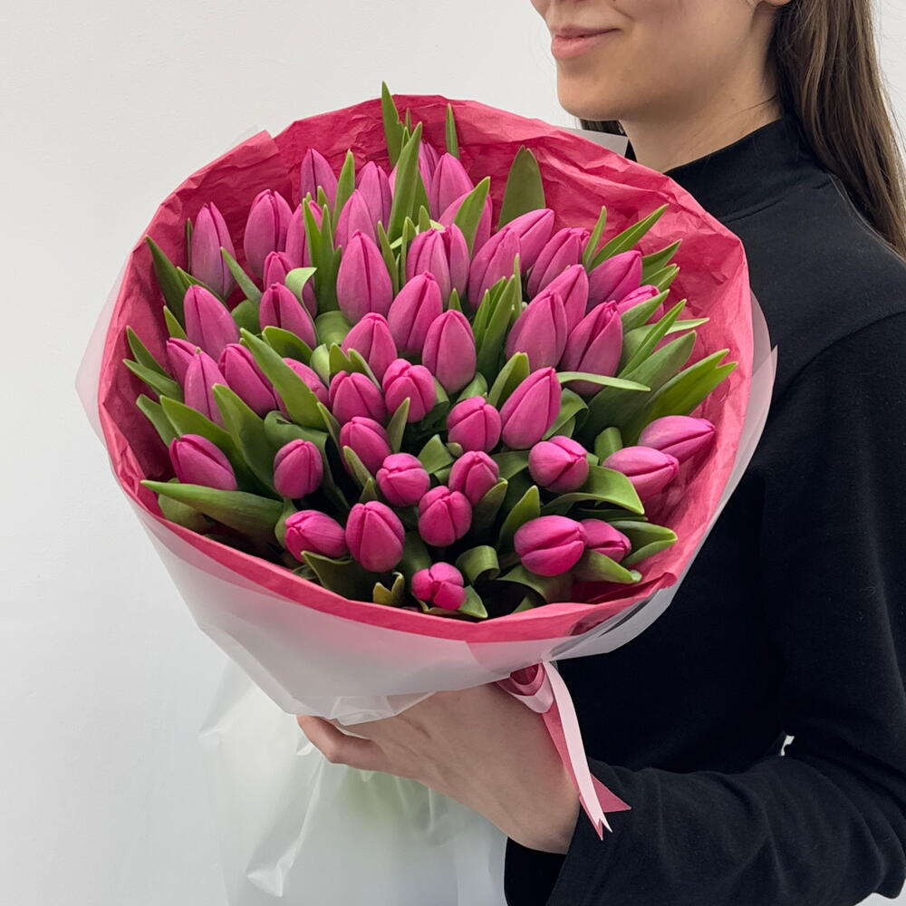 Шикарный букет из 49 весенних тюльпанов. Весеннее вдохновение: Подарите своей любимой женщине букет ярких тюльпанов! Этот весенний символ любви и нежности украсит её день и подарит улыбку. Выберите из множества оттенков и создайте уникальный подарок! Бережно упакуем в утеплитель от мороза , доставим в аквапаке с водой. Приятный бонус - бесплатная доставка!