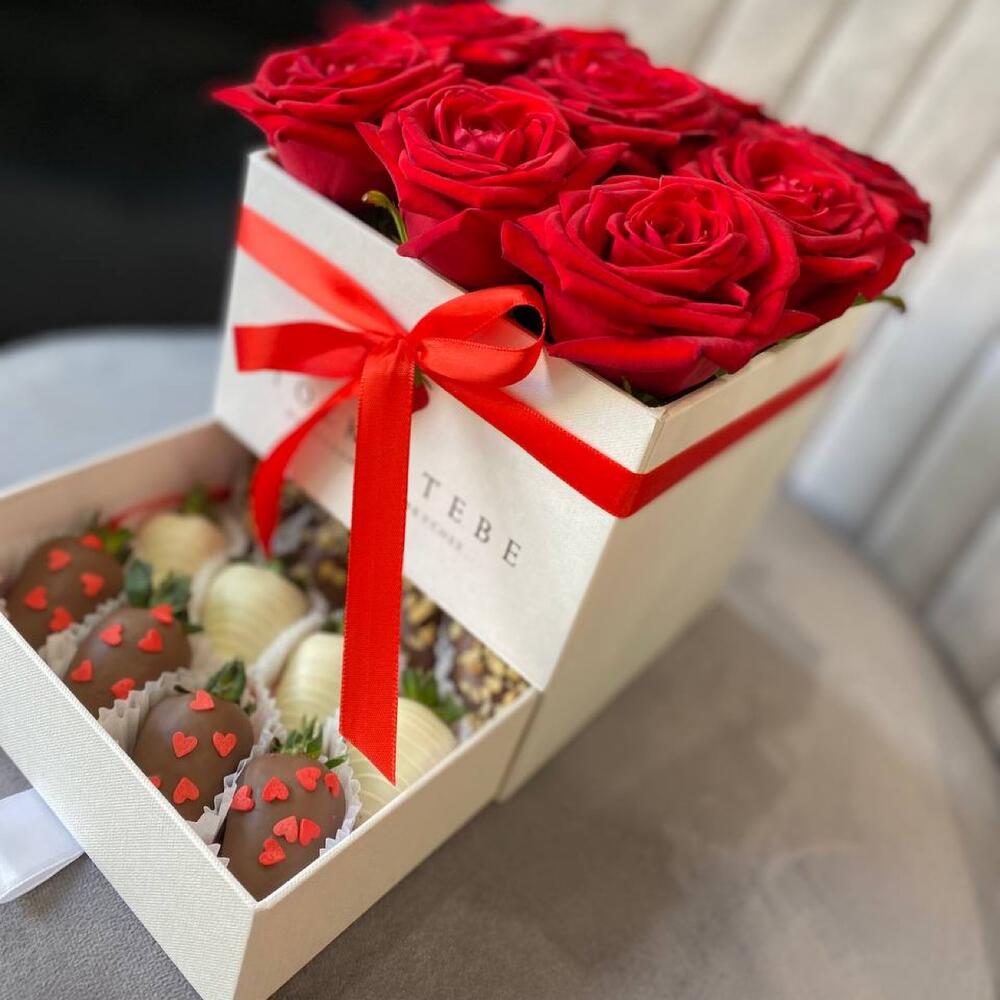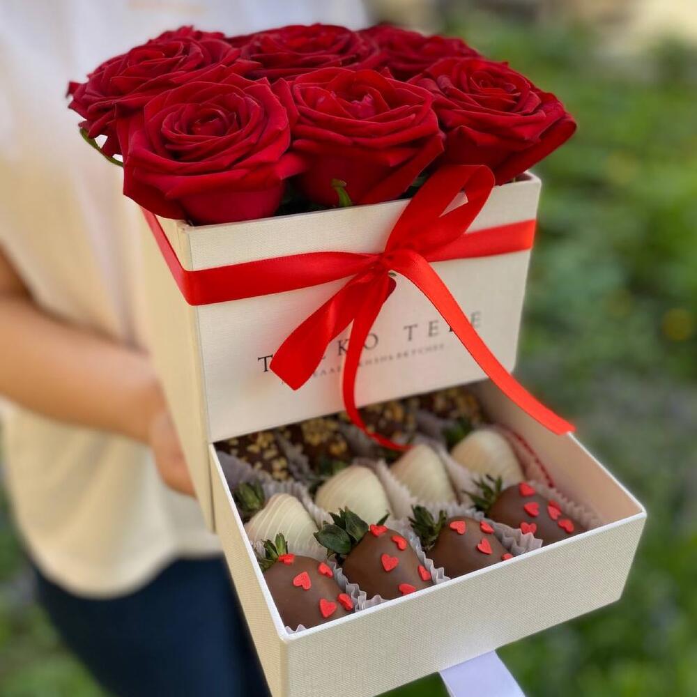 Роза - 9 шт. Клубника в шоколаде - 12 шт.