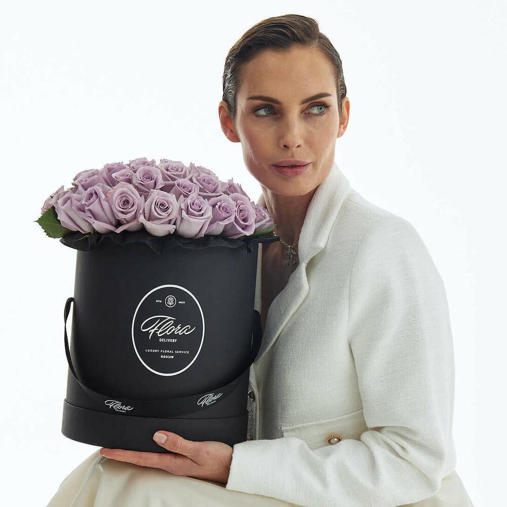 Эта прекрасная шляпная коробка Grand с великолепными сиреневыми розами Purple Haze, станет замечательным подарком Вашему любимому человеку! Высота, мм: 260 Ширина, мм: 230