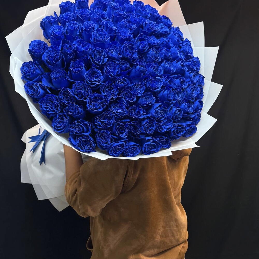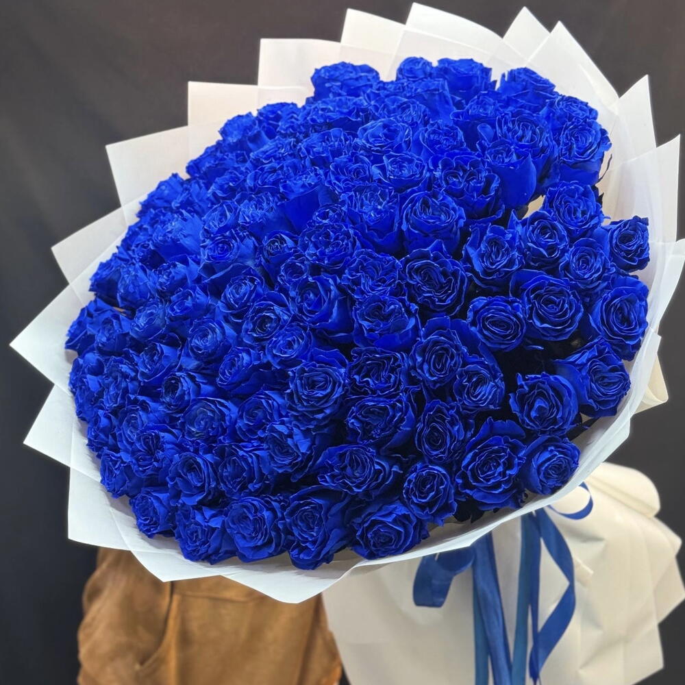 Упаковка - 5 шт. Лента атласная - 1 шт. синие розы - 101 шт.