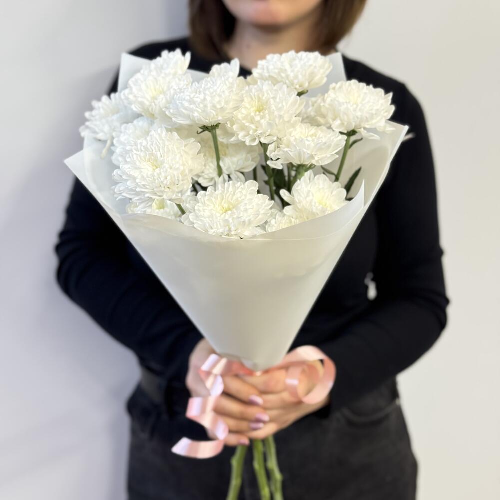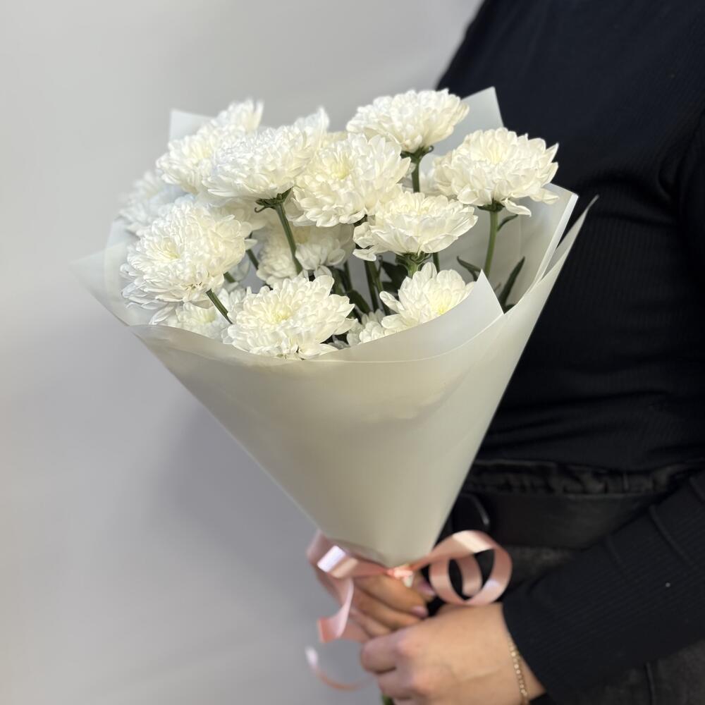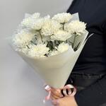 Стойкий букет хризантемы в натуральном белом цвете в сочетании с белой упаковкой придает букету воздушность и легкость. Букет не тяжелый, но тем не менее очень красивый, так как соцветия данного сорта хризантемы очень напоминает соцветия георгина, только у уменьшенной версии. Оформляйте заказы заранее, что бы быть уверенными, что вам приедут самые лучшие и свежие цветы! Хризантемы не капризны, при правильном уходе будут радовать долгое время: - воды в вазе должно быть по завязку букета, свежий прямой срез каждые 2 дня и замена воды в вазе также. - нельзя ставить хризантемы на сквозняки, у отопительных приборов, на подоконник с солнцем. Если нужно большое количество букетов, позаботьтесь, пожалуйста, об этом заранее, оформите предзаказ за несколько дней, что бы мы перевезли нужное количество к вашей дате. Дарите своим близким любовь и заботу, а мы Вам в этом поможем. С уважением, Цветов Букеты.