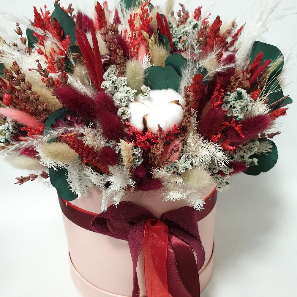 Сухоцветы в шляпной коробке