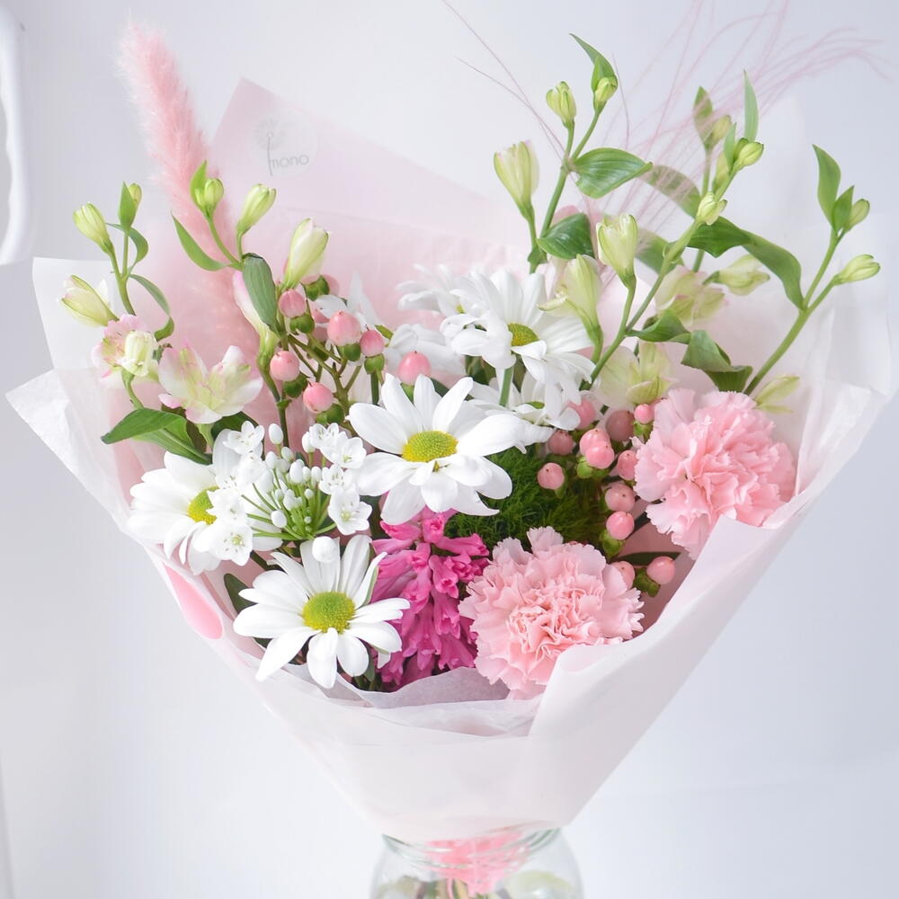 Гиацинт - 1 шт. Гиперикум - 2 шт. Хризантема кустовая - 1 шт. Упаковка - 1 шт. Фисташка - 1 шт. Аллиум - 1 шт. Диантус сортовой - 2 шт. камыш декоративный - 1 шт. гринтрик - 1 шт. ковыль связка - 1 шт. альстромерия шармелия - 2 шт.