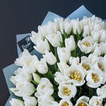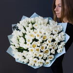 Монобукет из 101 шт белых тюльпанов Доставляется в транспортировочной коробке Состав: упаковка пленка матовая, тюльпаны Ширина, см: 60 Длина, см: 60 Высота, см: 40 Вес: 0.9 кг..