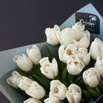 Монобукет из 21 шт белых тюльпанов Доставляется в транспортировочной коробке Состав: упаковка пленка матовая, тюльпаны Ширина, см: 25 Длина, см: 25 Высота, см: 40 Вес: 0.9 кг..