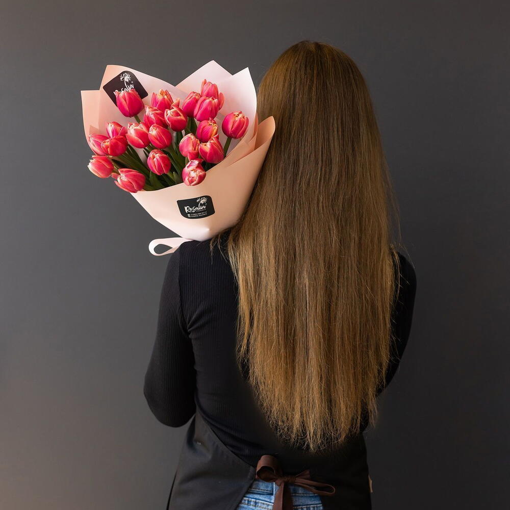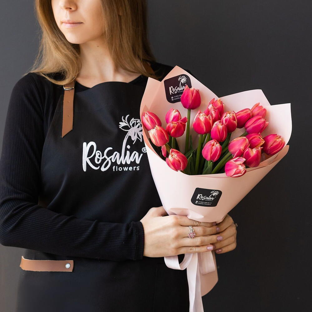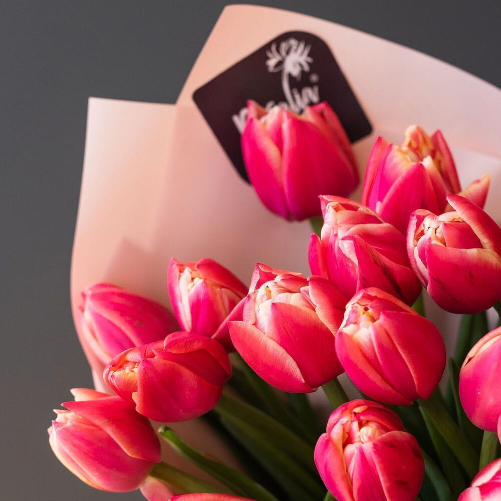 Монобукет из 21 шт пионовидных тюльпанов Доставляется в транспортировочной коробке Состав: упаковка пленка матовая, тюльпаны Ширина, см: 25 Длина, см: 25 Высота, см: 40 Вес: 0.9 кг..