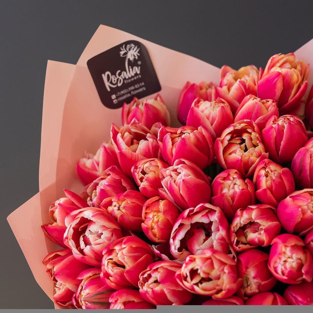 Монобукет из 51 шт пионовидных тюльпанов Доставляется в транспортировочной коробке Состав: упаковка пленка матовая, тюльпаны Ширина, см: 40 Длина, см: 40 Высота, см: 50 Вес: 0.9 кг..