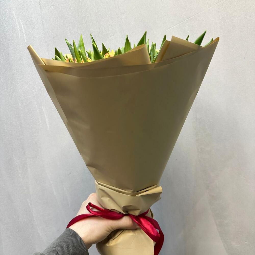 Атласная лента - 1 шт. Дизайнерская упаковка - 1 шт. тюльпаны - 51 шт.