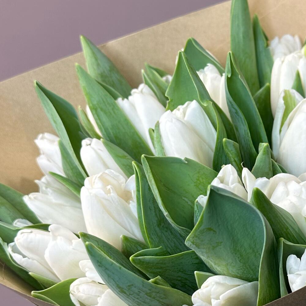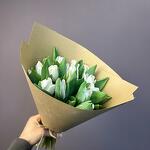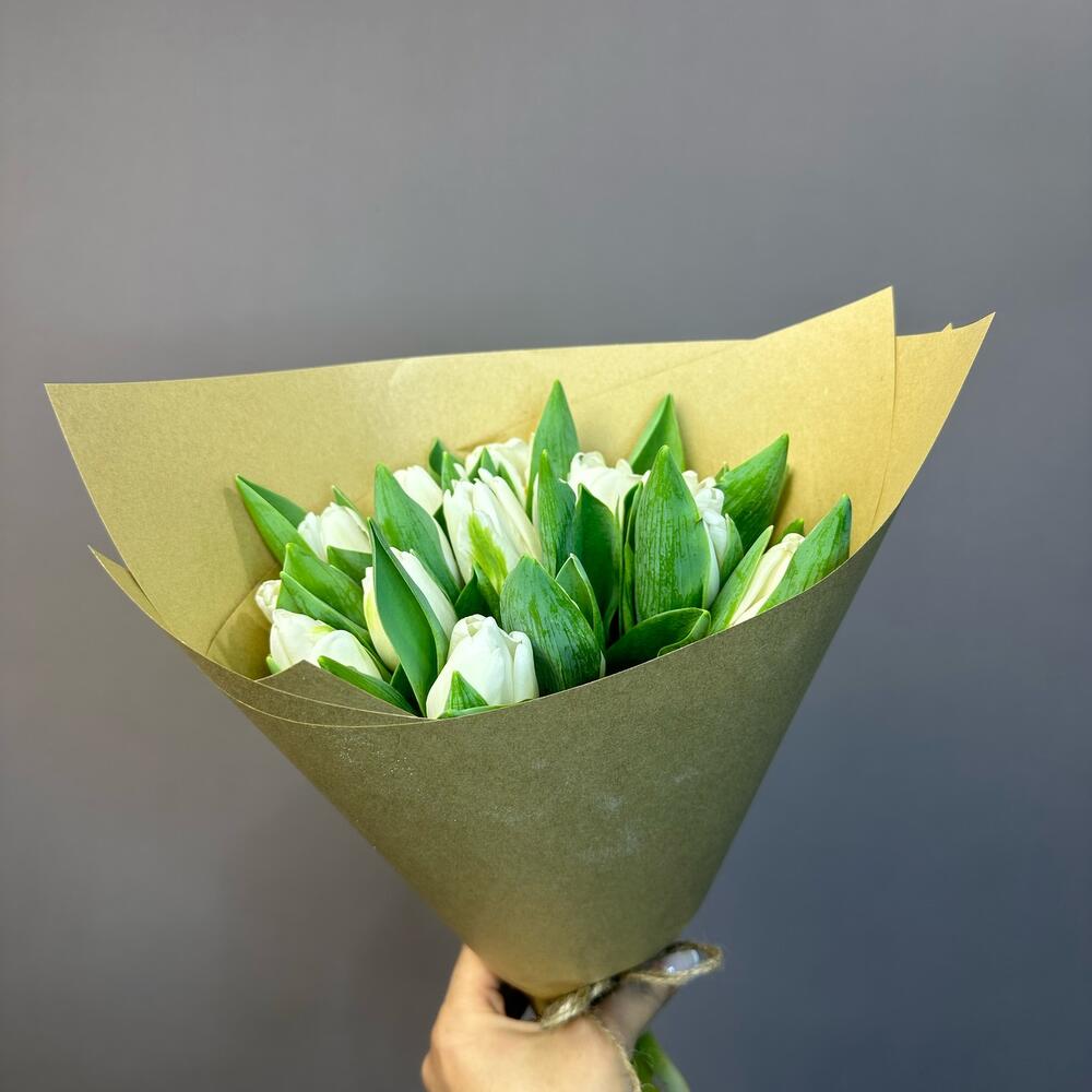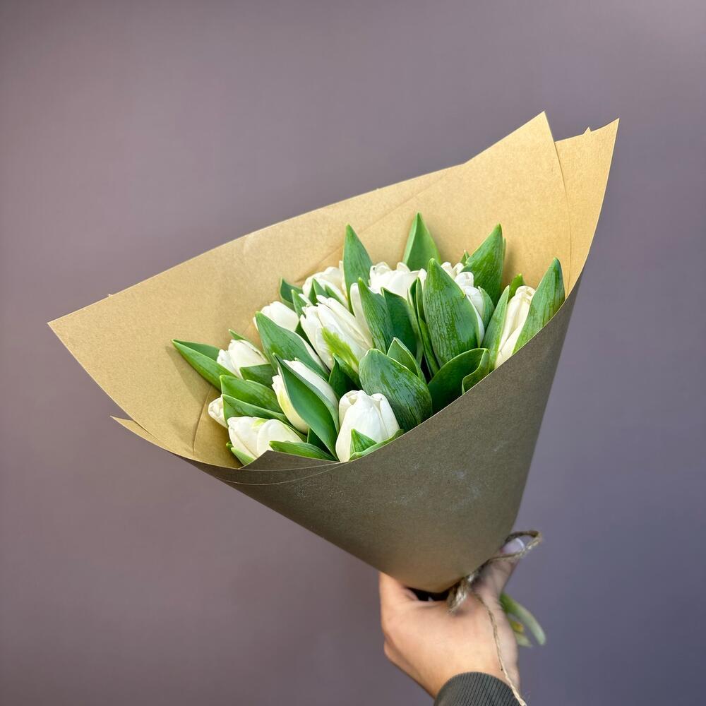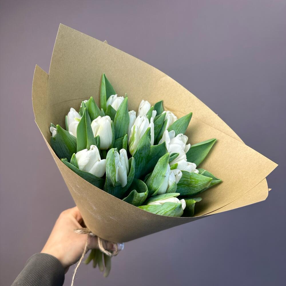 Крафт упаковка - 1 шт. бечевка натуральная - 2 шт. тюльпаны белые - 15 шт.