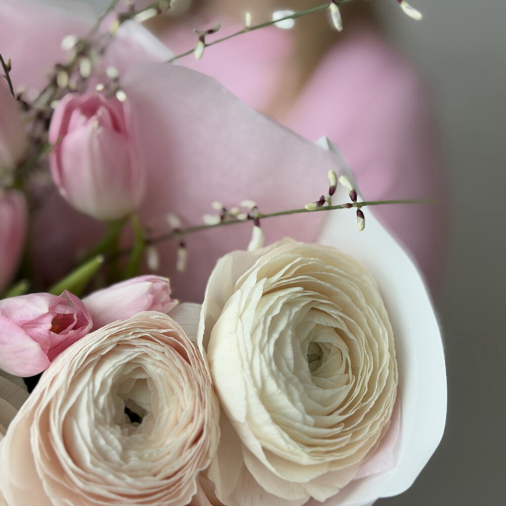 Тюльпан - 15 шт. Гениста Розовая - 1 шт. Ранункулус - 5 шт.