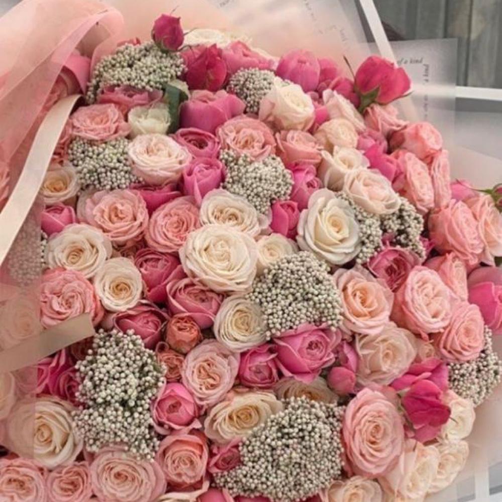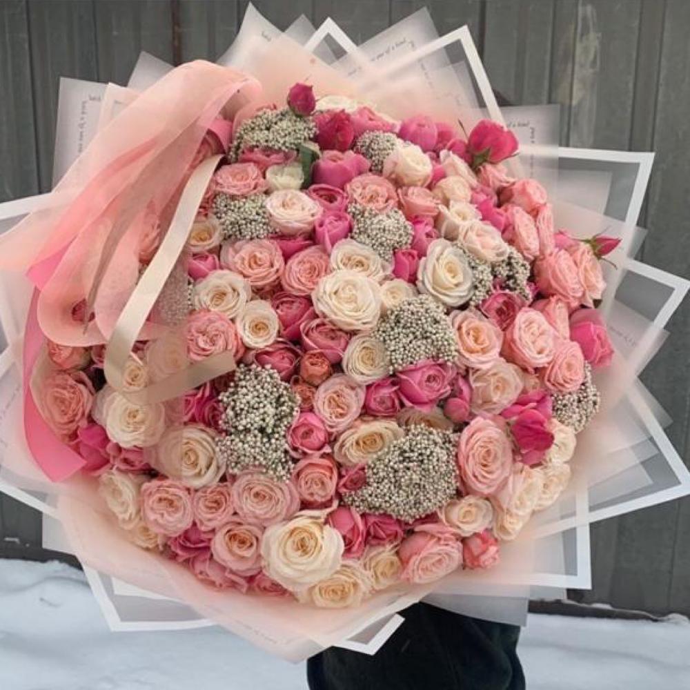 Satin ribbon - 2 шт. rose pievina - 21 шт. rose bush - 10 шт. packaging design - 2 шт. greens decorative - 9 шт. rose bush pievina - 15 шт. stamnos - 10 шт.