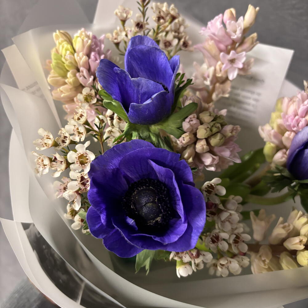 Анемон - 3 шт. Ваксфлауэр - 1 шт. Гиацинты - 5 шт.