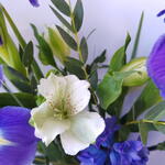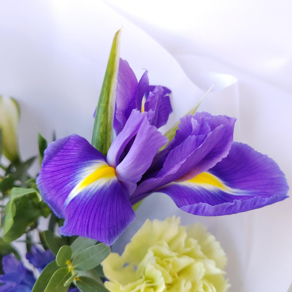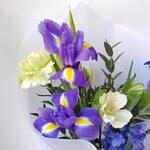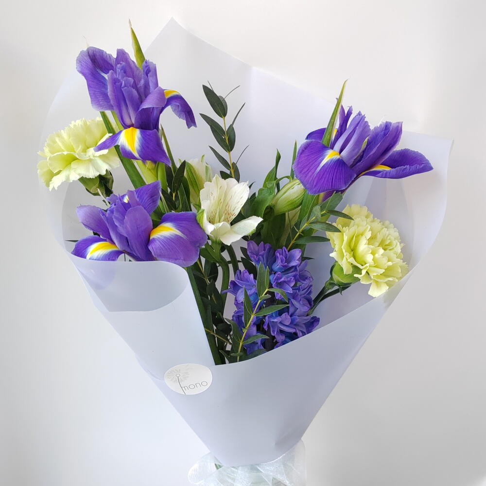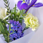 Гиацинт - 1 шт. Ирис - 3 шт. Эвкалипт - 1 шт. Упаковка - 1 шт. Диантус - 2 шт.