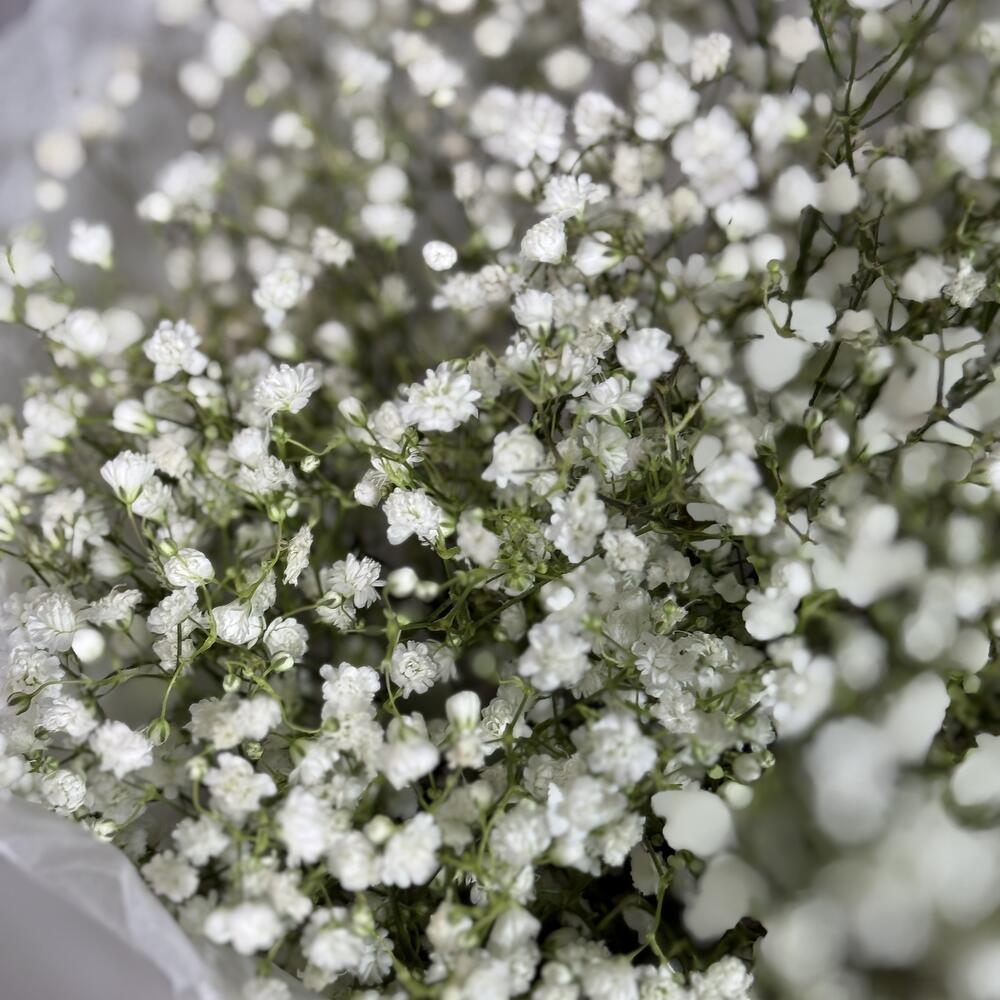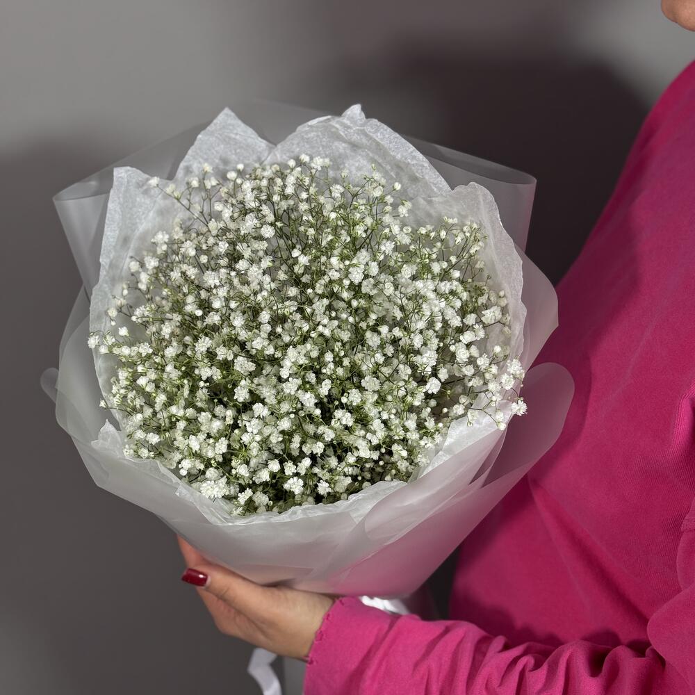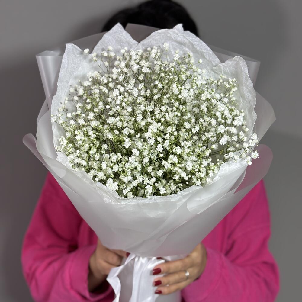Гипсофила - 5 шт. Лента атласная - 2 шт. Упаковка дизайнерская - 2 шт.