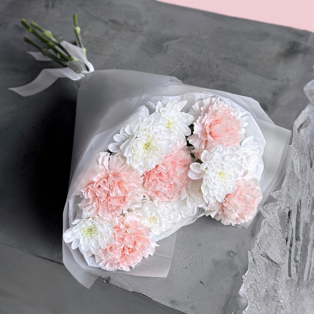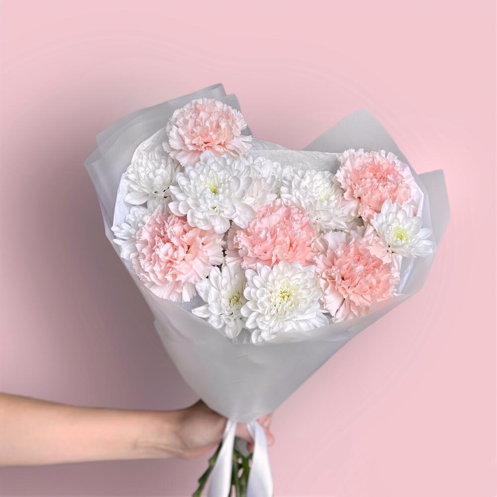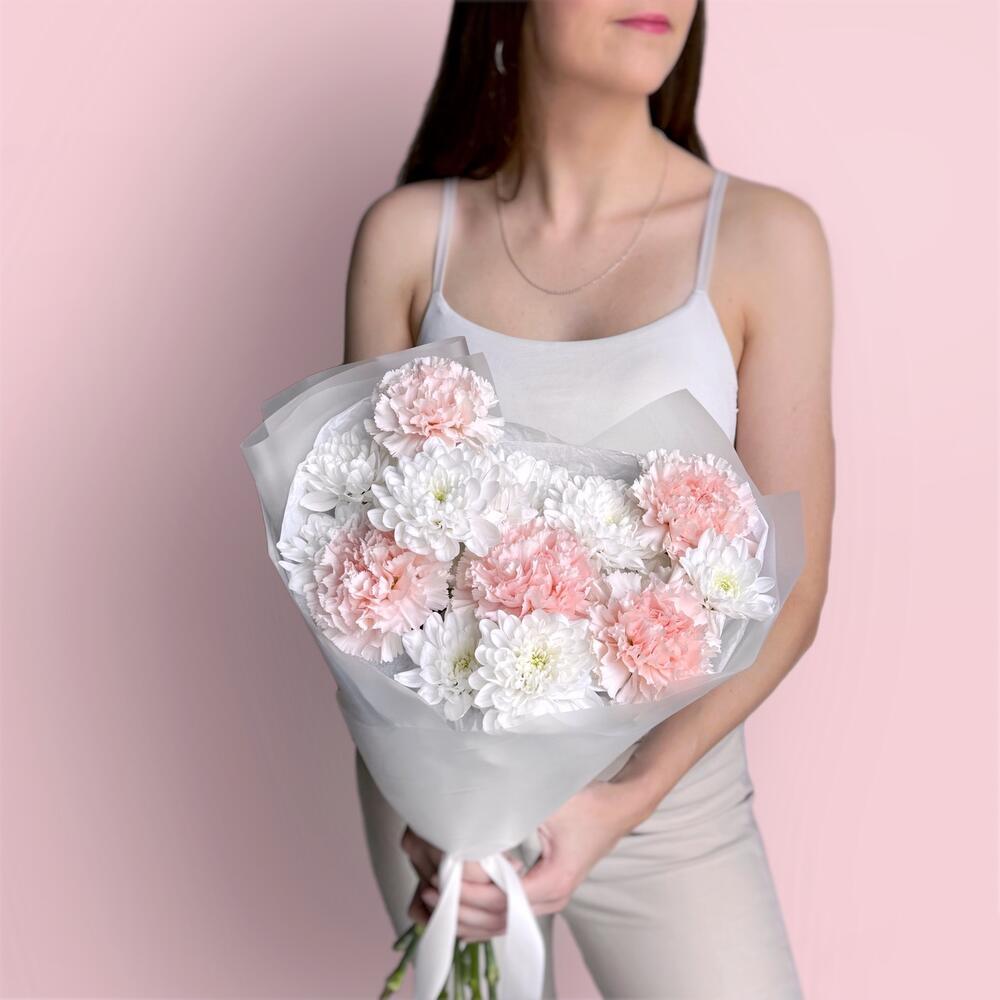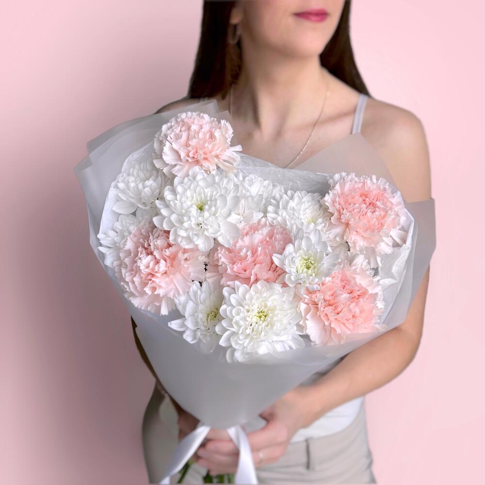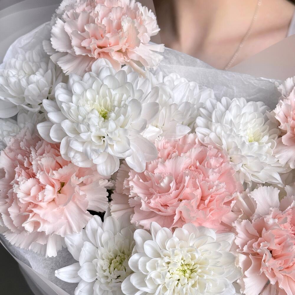 Воздушный нежный букет кустовая хризантема и диантус