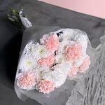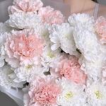 Нежный букет в пастельных тонах из кустовой хризантемы и розового диантуса. Эти цветы очень стойкие и будут долго радовать своей красотой :) Не забудьте подрезать цветы непосредственно перед тем как ставить в вазу. Не храните букет на прямых солнечных лучах и возле отопительных приборов, чтобы сохранить цветы свежими как можно дольше. Обратите внимание на написанные размеры букета и фото в полный рост с человеком, для понимания размера композиции :)
