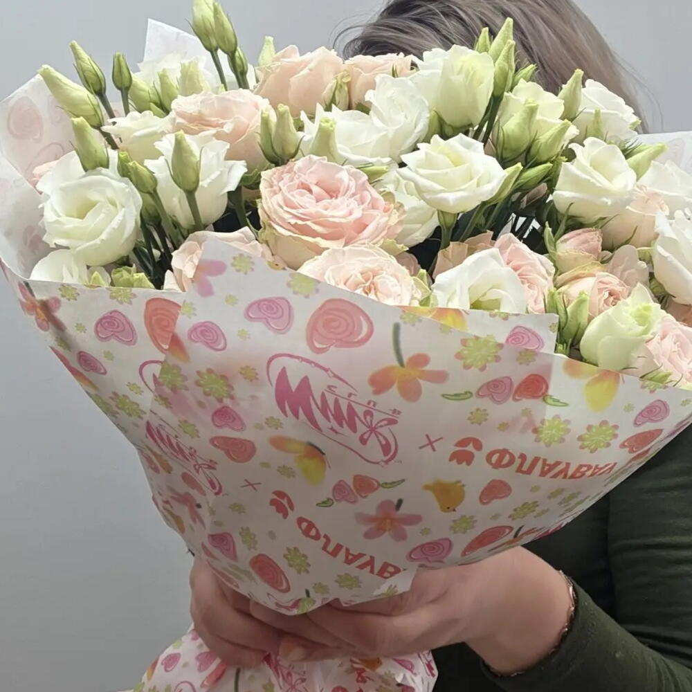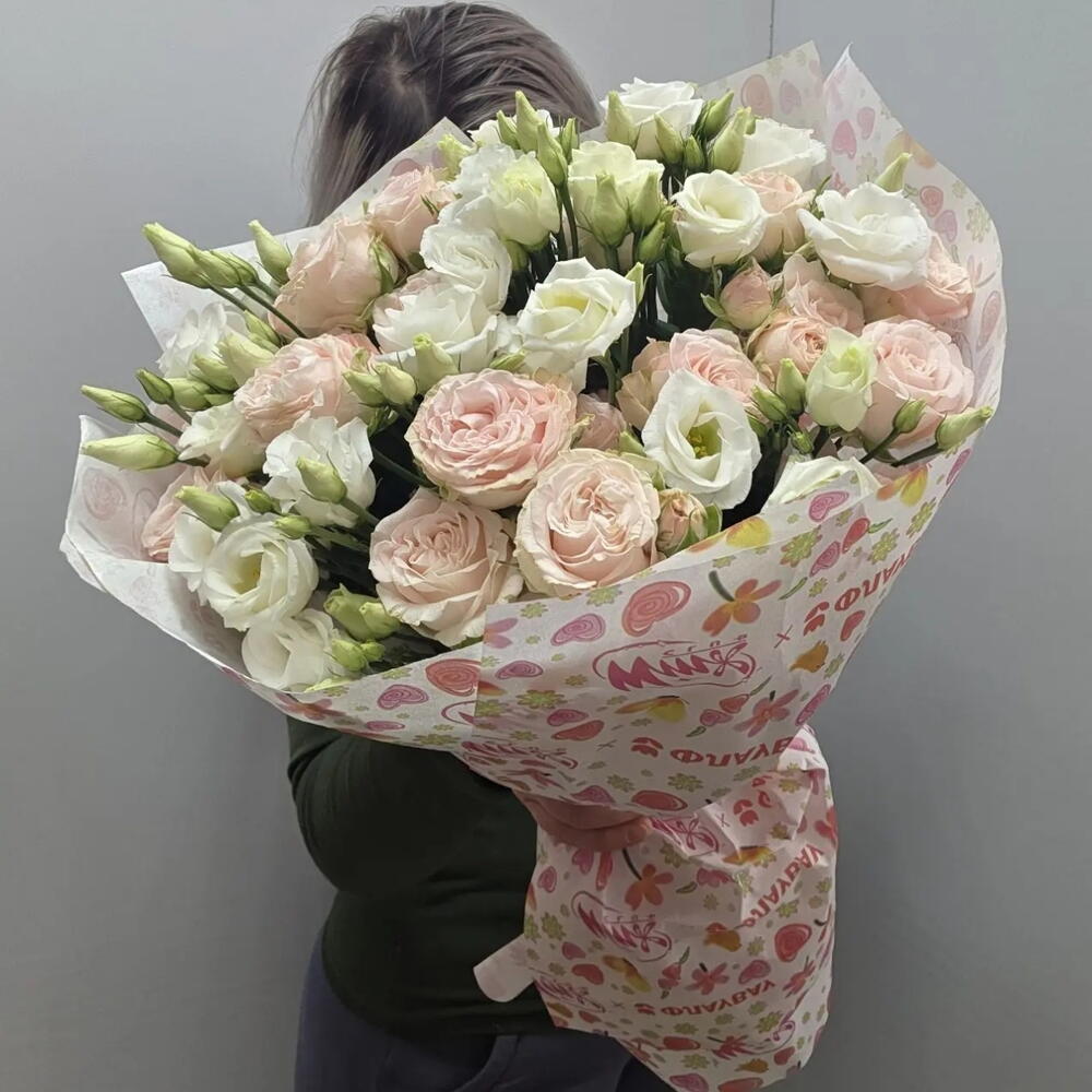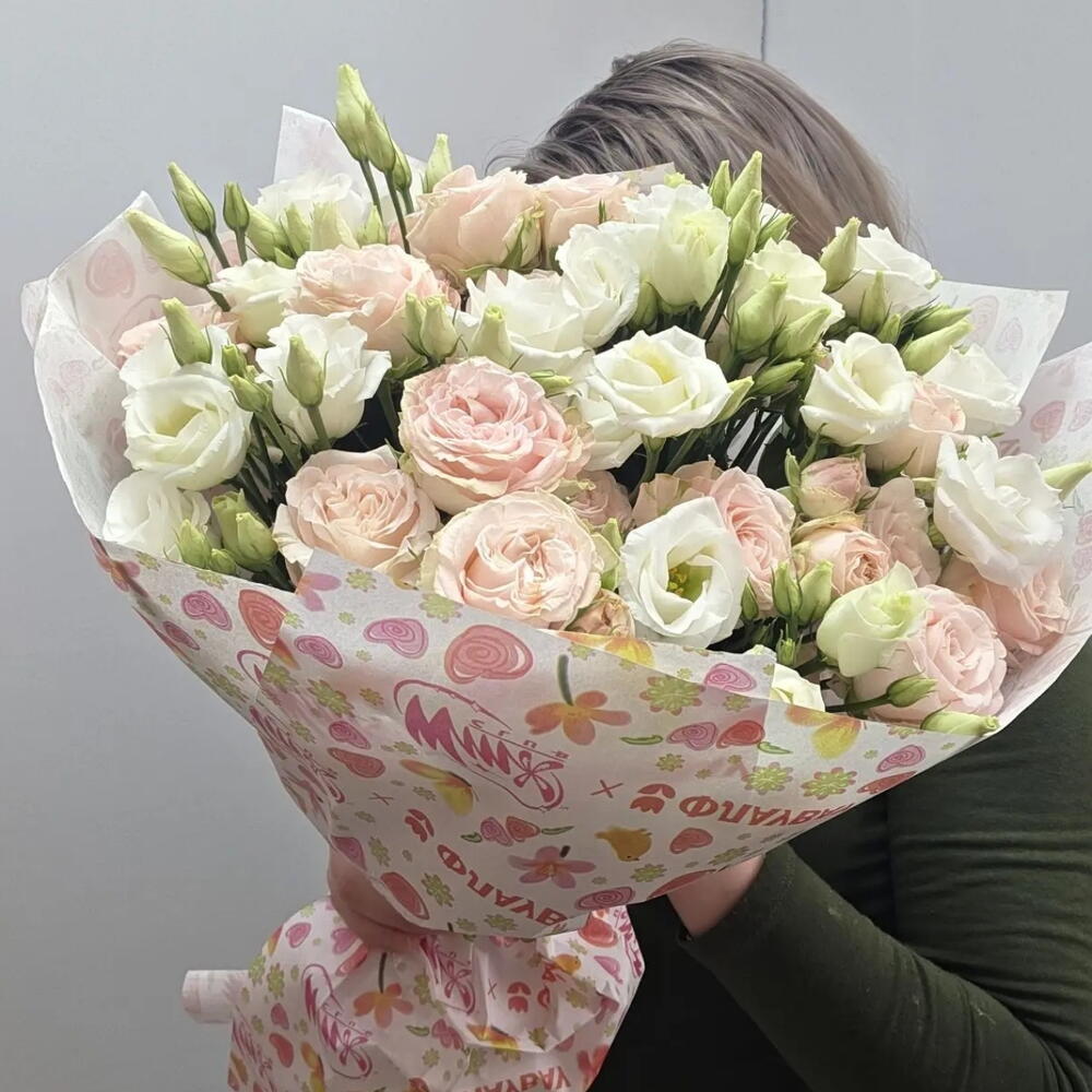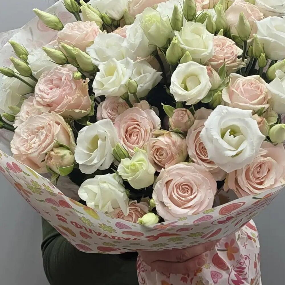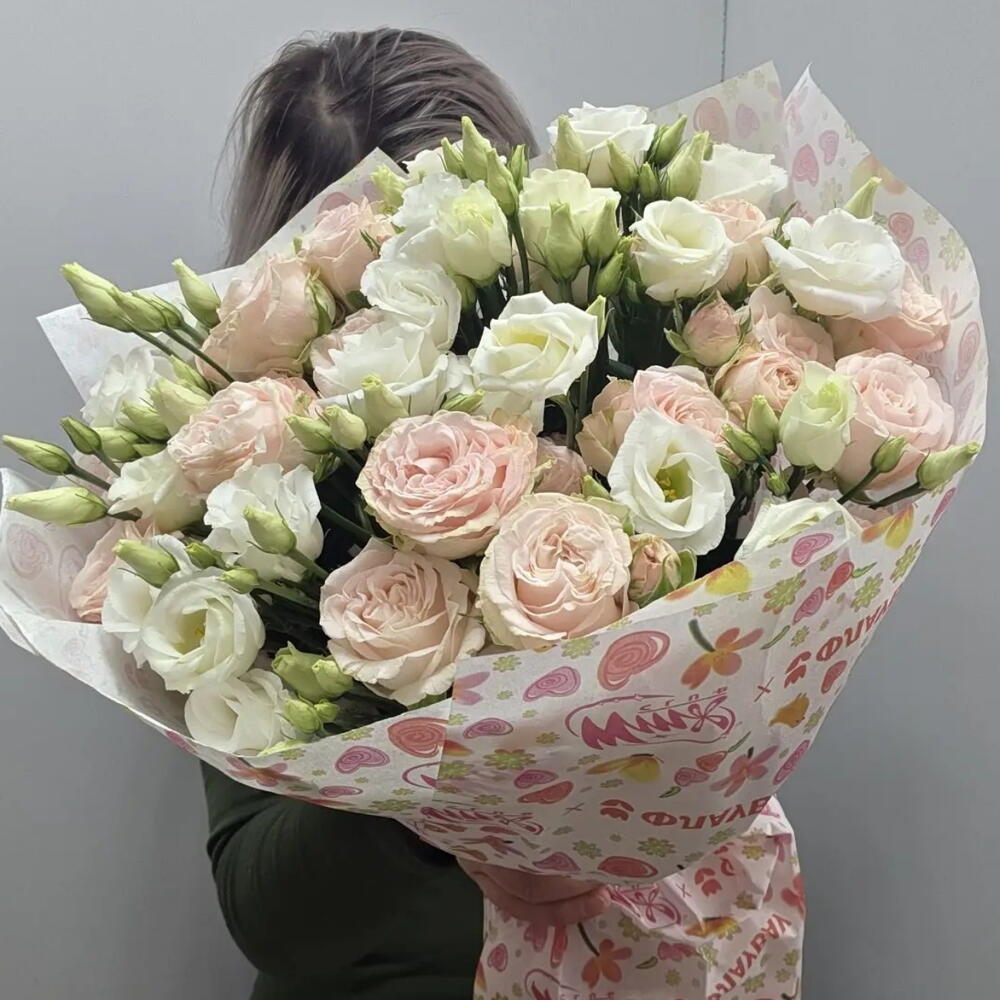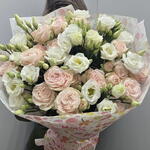 Букет из кустовой пионовидной розы, эустомы