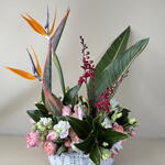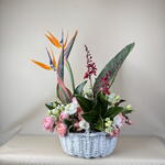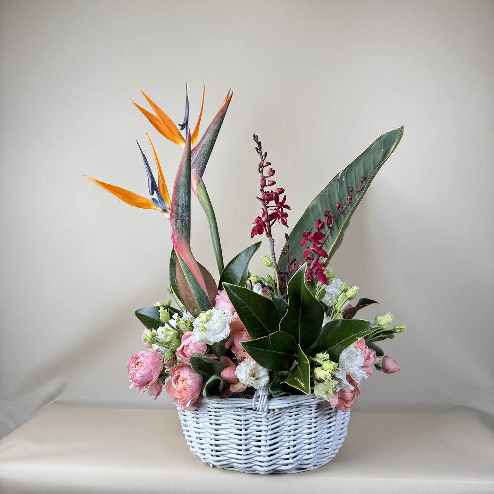 Дерзкая, яркая, незабываемая корзина, сочетающая в себе и шикарные экзотические цветы, и любимые кустовые розы и эустомы. *Состав может немного отличаться в зависимости от сезона: корзина собирается на заказ только из свежайших цветов