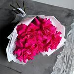 Яркий стильный букет из красивейшей розовой французской розы :) Идеален на день рождения, 14 февраля, 8 марта, годовщину, свадьбу, свидание, День матери или просто без повода. Не забудьте подрезать цветы НЕПОСРЕДСТВЕННО перед тем как ставить в вазу (после подрезки в течении 2-3 секунд поставьте в воду). Не храните букет на прямых солнечных лучах и возле отопительных приборов, чтобы сохранить цветы свежими как можно дольше. Обратите внимание на размеры букета и фото в полный рост с человеком, для понимания размера композиции, это фото есть в карточке товара :)