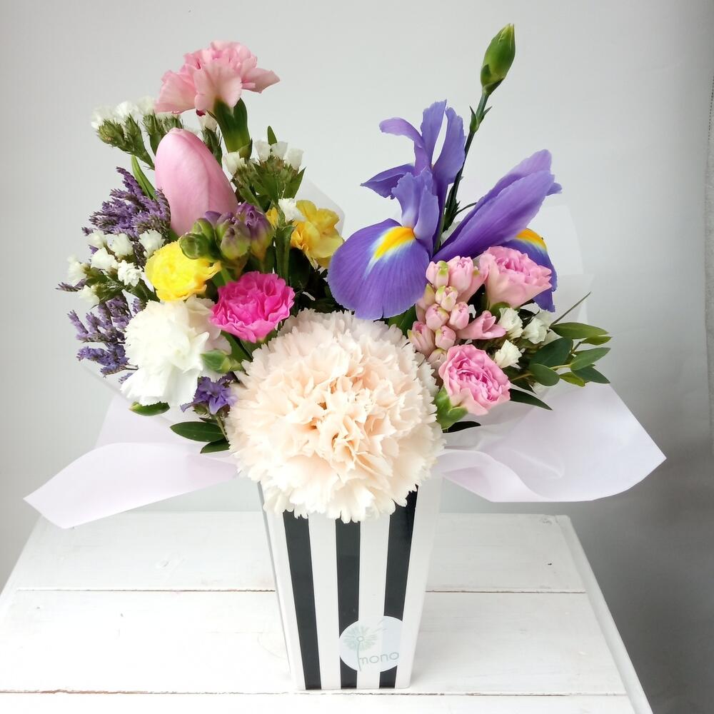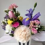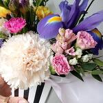 Гиацинт - 1 шт. Тюльпан - 1 шт. Фрезия - 1 шт. Коробка - 1 шт. Ирис Blue Magic - 1 шт. Оазис флористический - 1 шт. зелень декоративная пучок - 1 шт. диантус кустовой микс - 2 шт. лимониум микс (mix) - 2 шт. диантус brut - 1 шт.