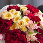 Альстромерия - 7 шт. Кустовая роза - 7 шт. Упаковка дизайнерская - 1 шт. Роза французская - 7 шт.
