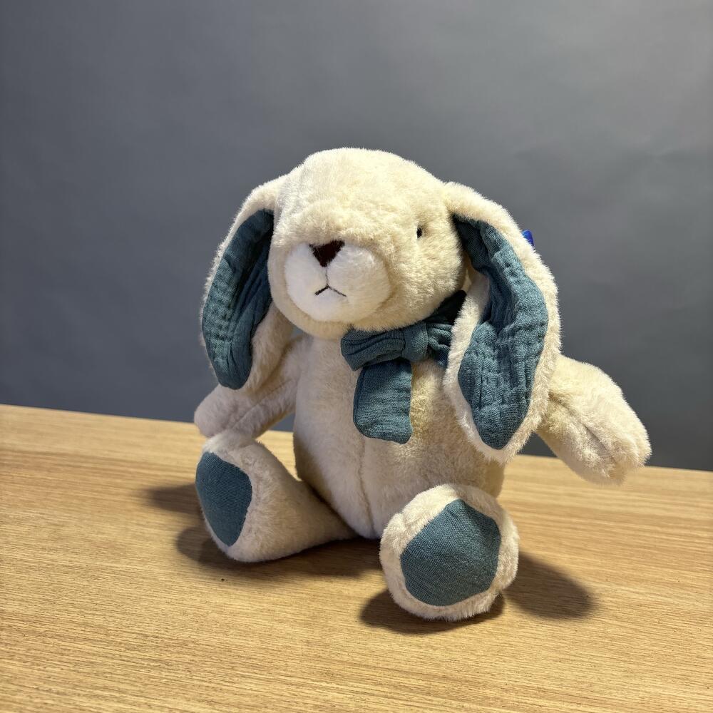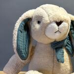 Зайка с синим бантом