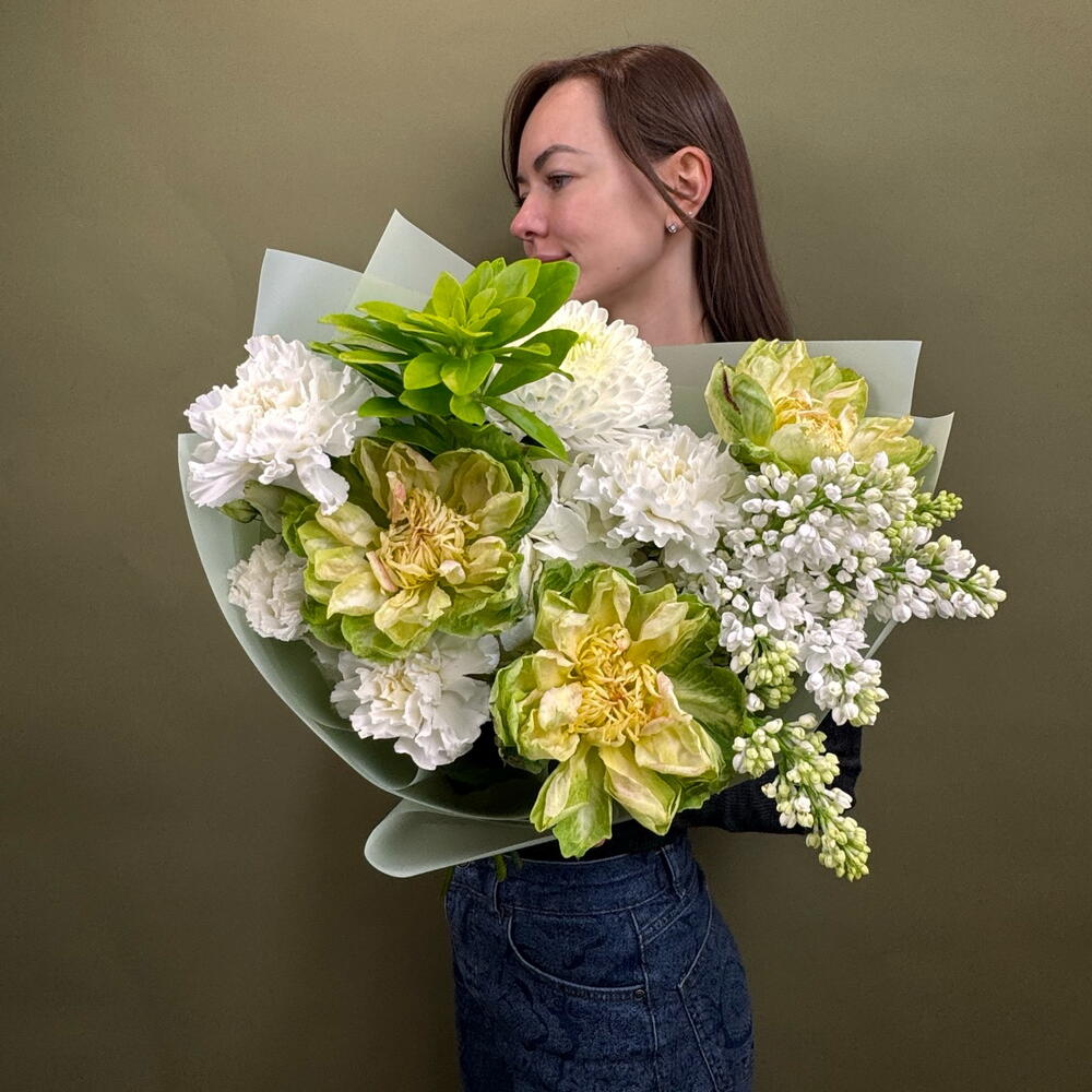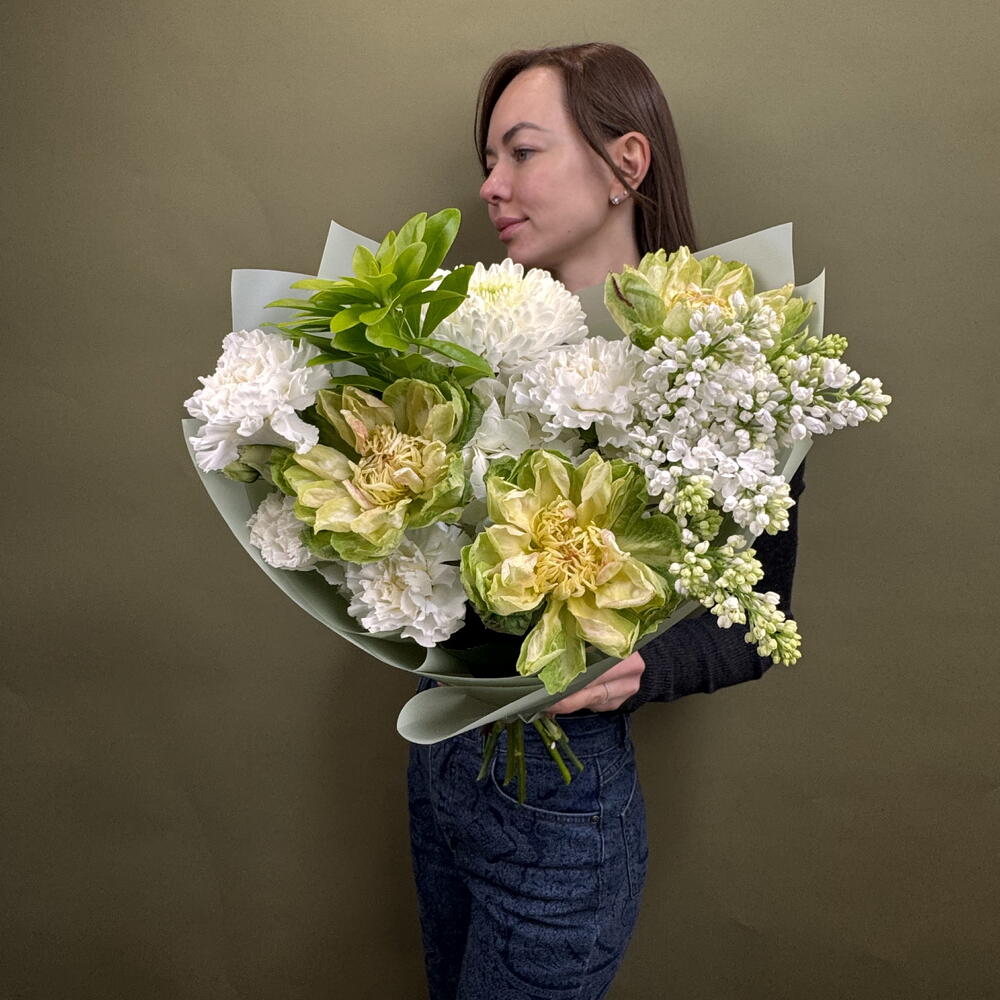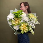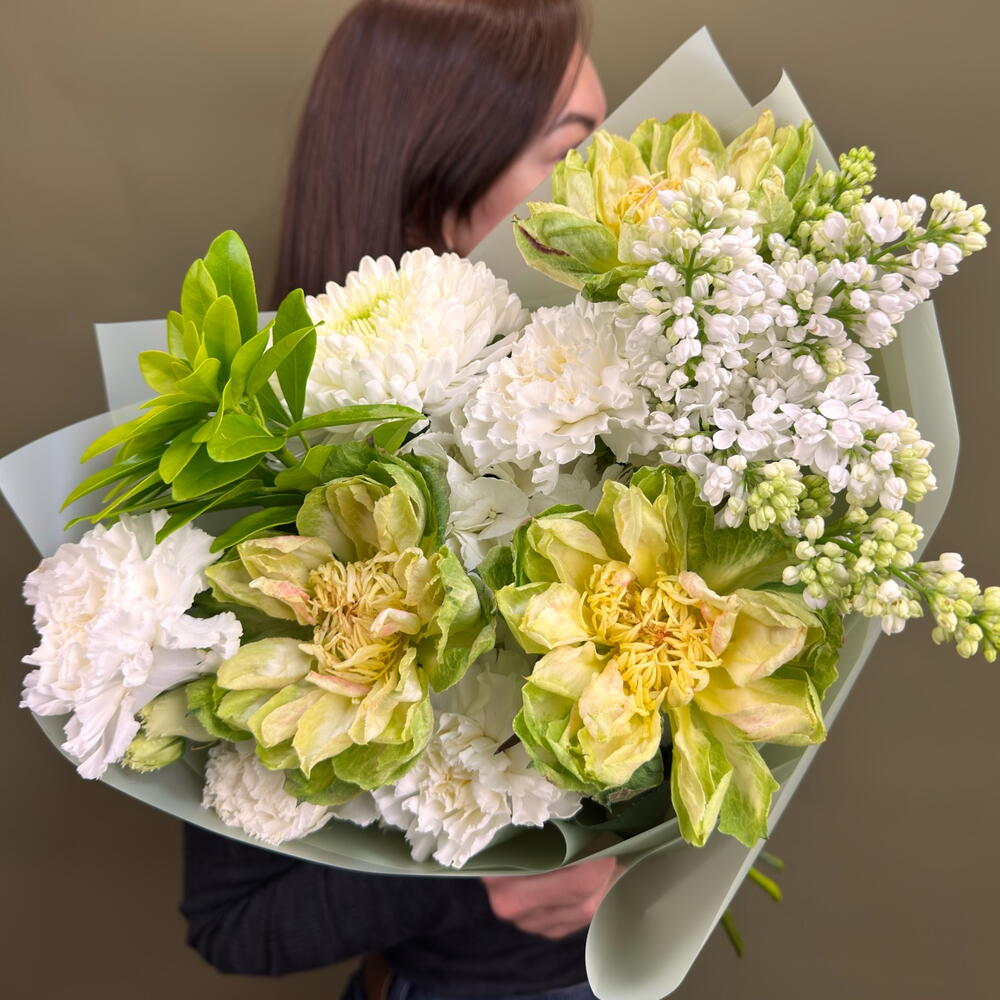 Гортензия - 1 шт. Упаковка - 1 шт. Диантус - 3 шт. Хризантема одноголовая - 1 шт. Сирень белая - 1 шт. роза вегги - 3 шт.