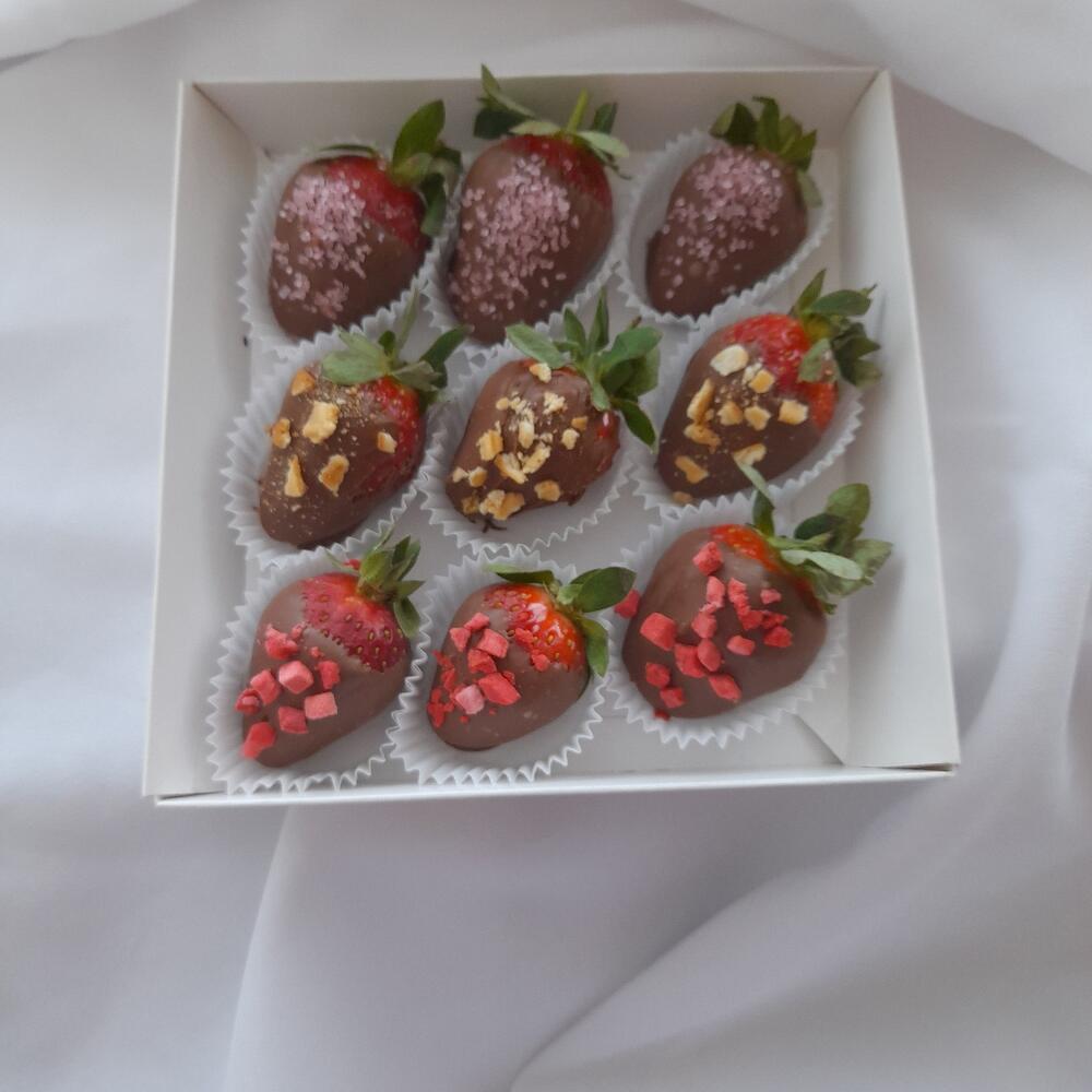 Клубника свежая , профессиональный кондитерский шоколад SICAO, сублимированные Ягоды , вафля, цветной кондитерский сахар