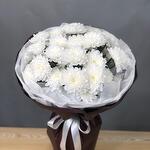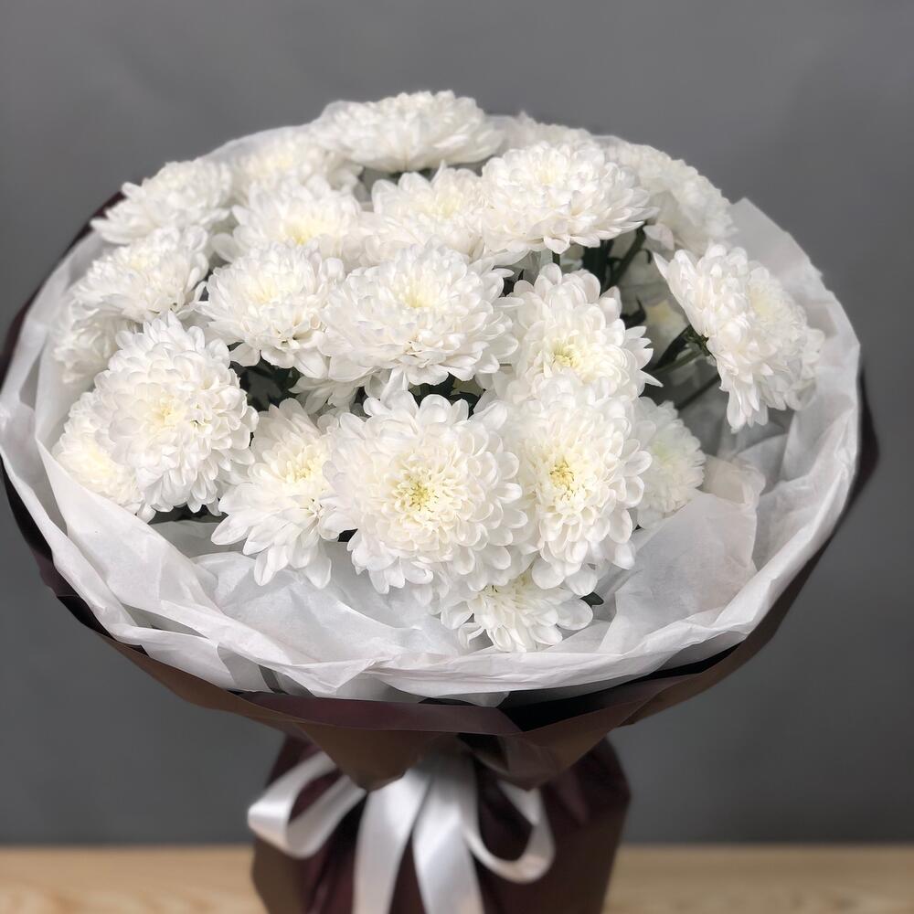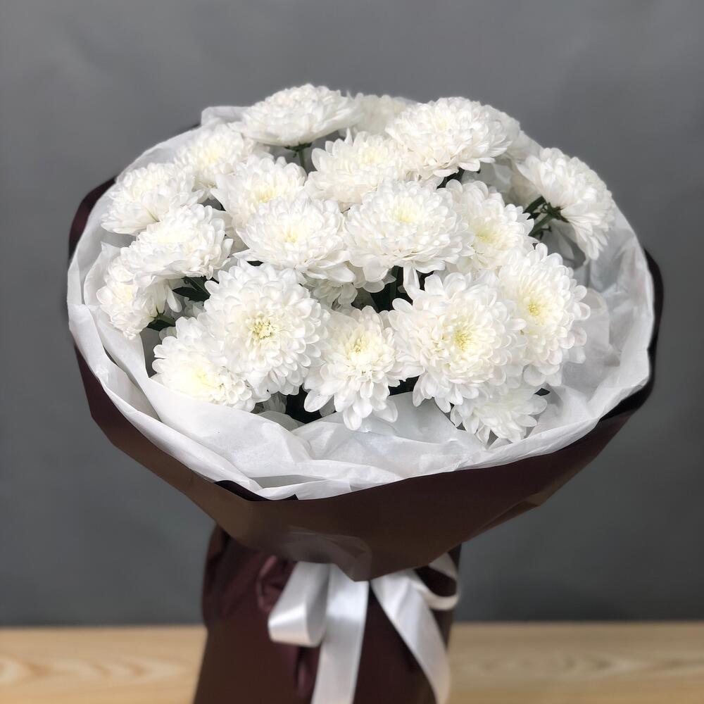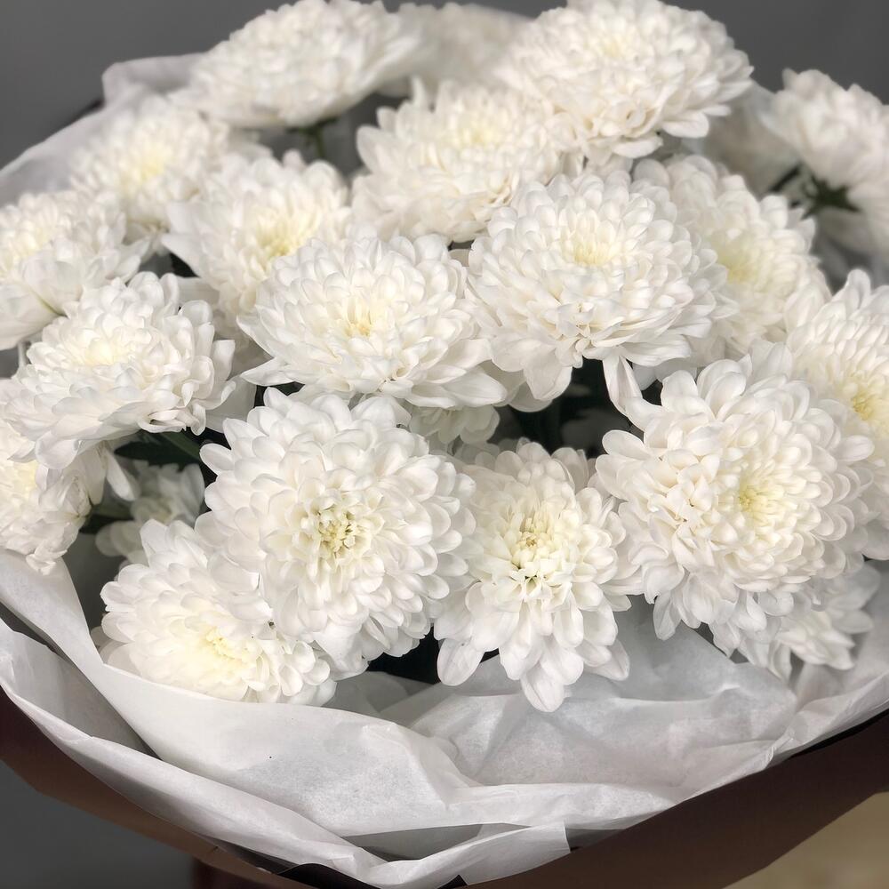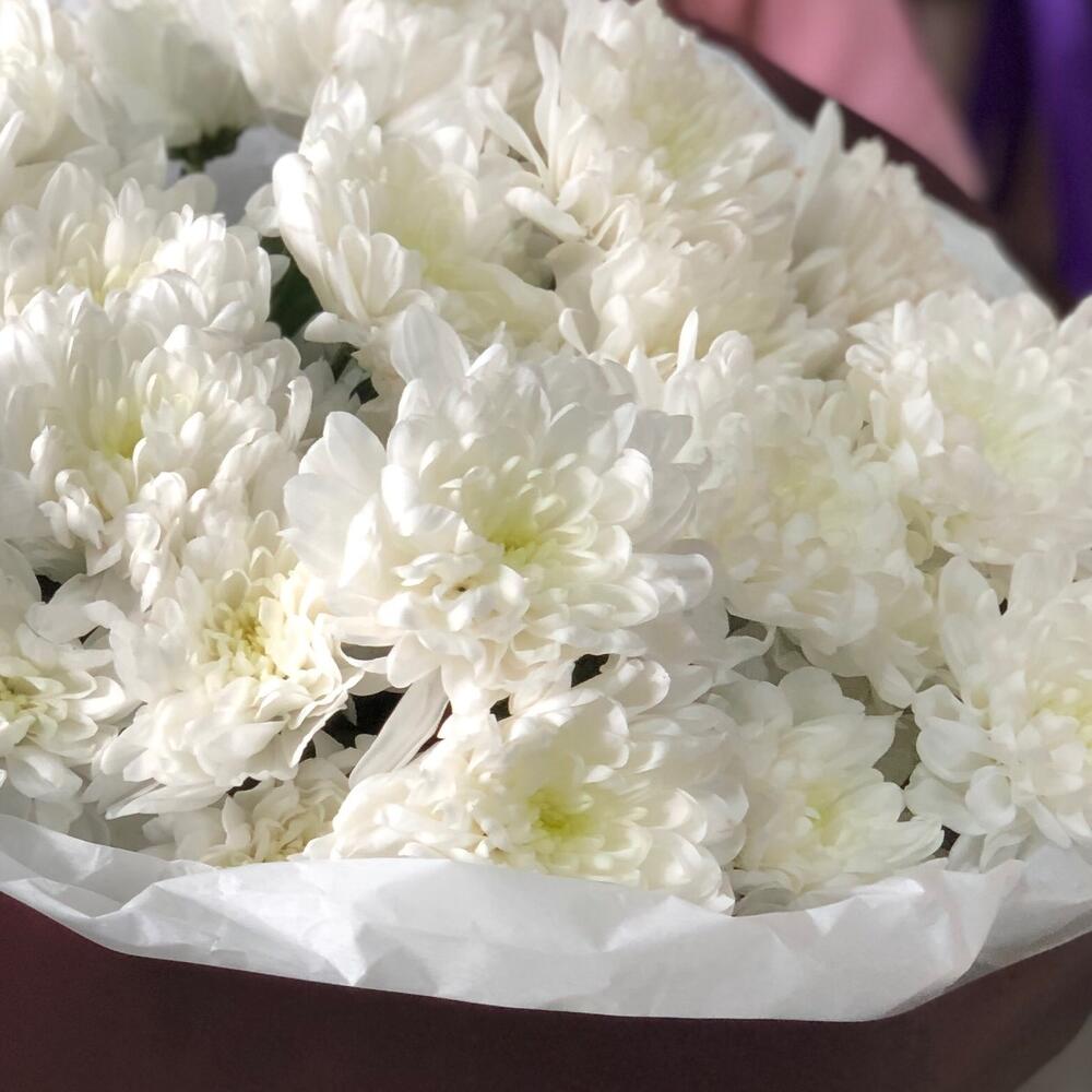 Chrysanthème arbustif - 5 pce Ruban de satin - 1 pce Silence blanc - 2 pce Film designer - 3 pce