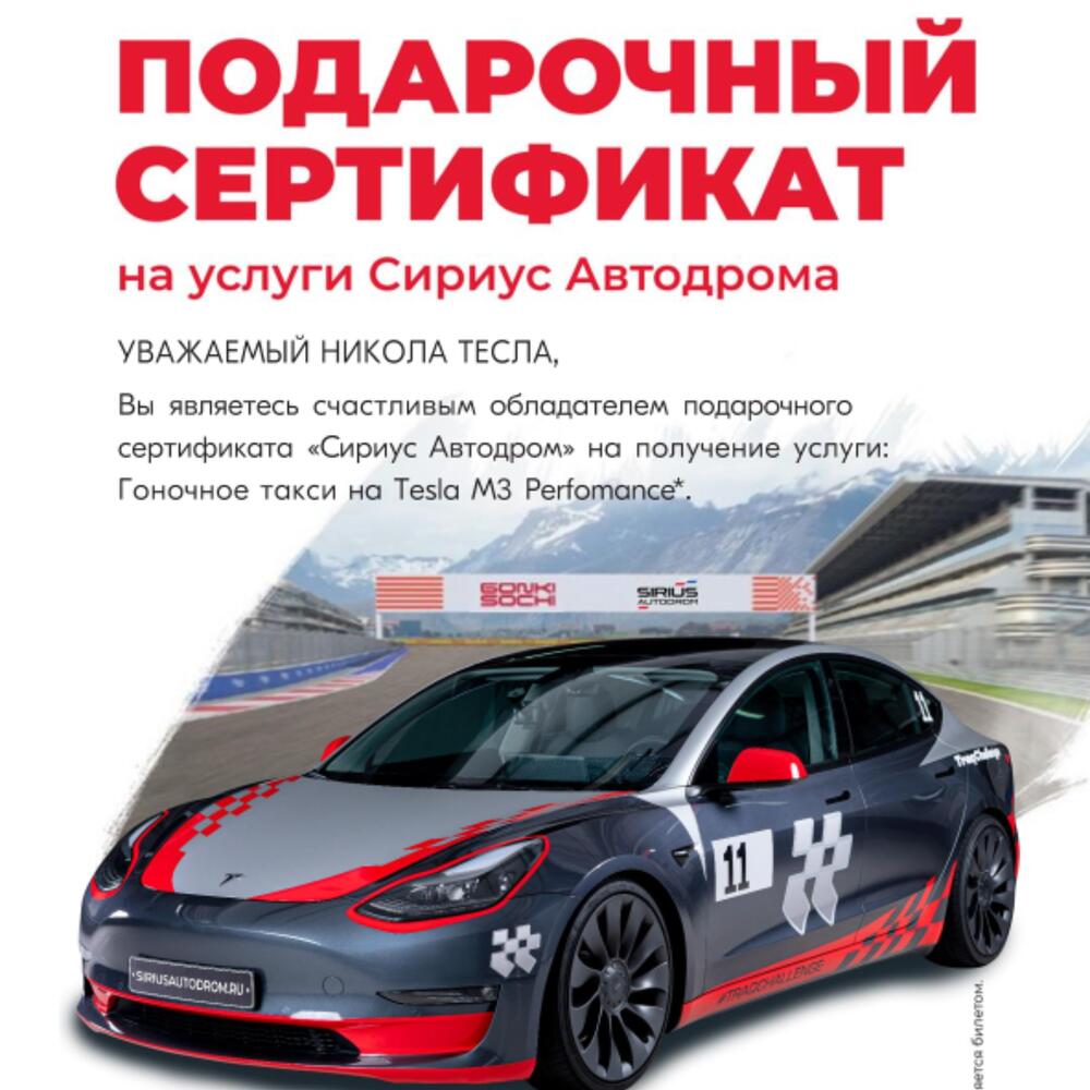 [Электронный сертификат] Гоночное такси на Tesla M3 Perfomance на СириусАвтодроме