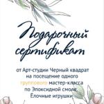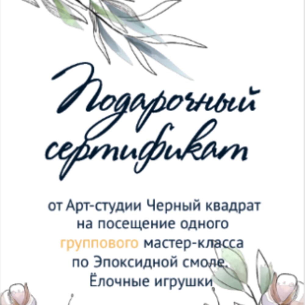 Обязательно укажите в чате электронную почту, на которую необходимо выслать сертификат! Подарочный сертификат на групповой мастер-класс Елочные игрушки из эпоксидной смолы - отличный подарок к новому году! По данному сертификату можно записаться одному человеку на групповой мастер-класс по расписанию и создать 5 елочных игрушек в индивидуальной цветовой гамме для себя или в подарок! Срок действия сертификата 1 год с момента покупки. В стоимость входят все необходимые материалы, вода, чай/кофе в студии. Продолжительность занятия до 3х часов.