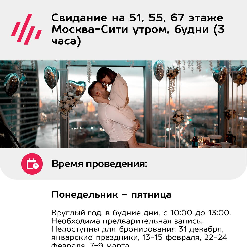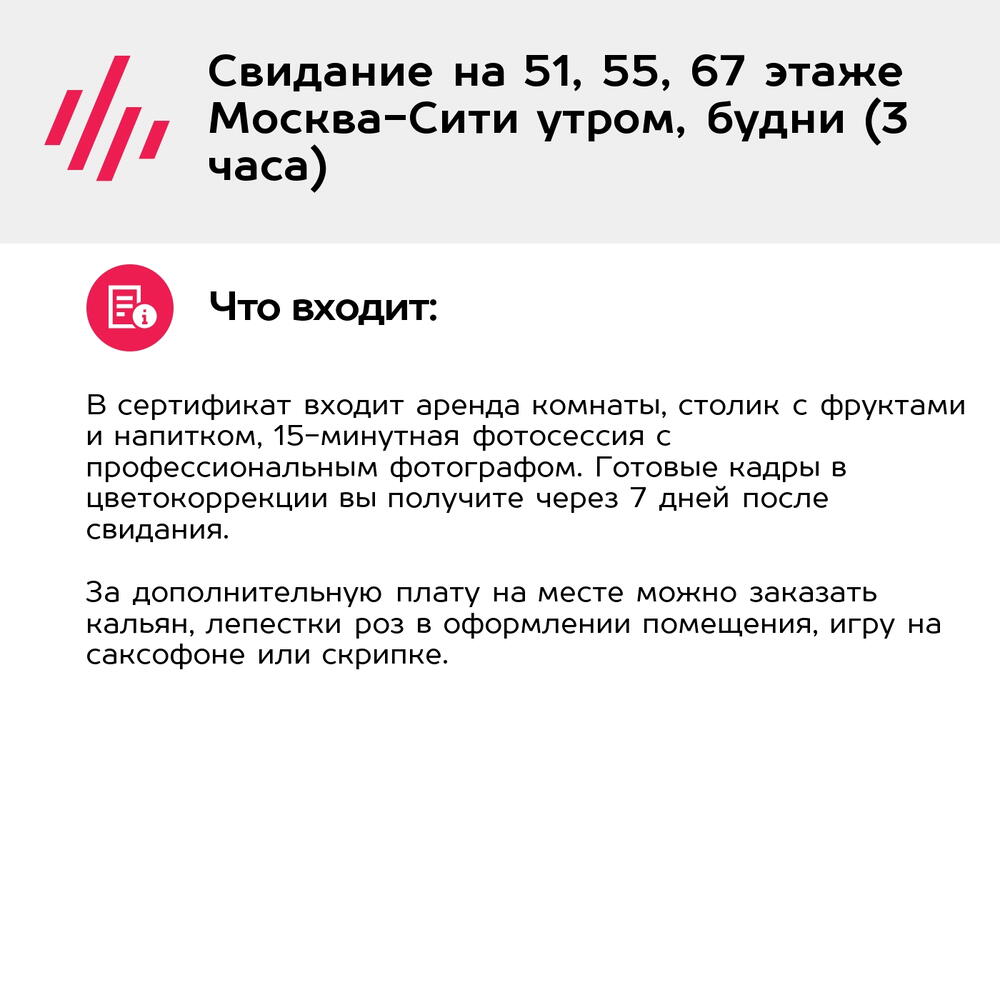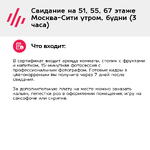 Подарочный сертификат Свидание на 51, 55, 67 этаже Москва-Сити утром, будни (3 часа)