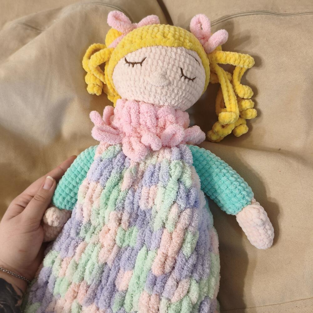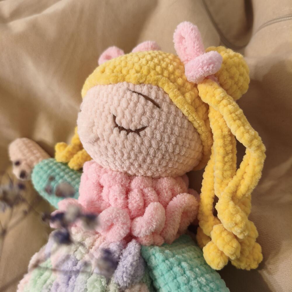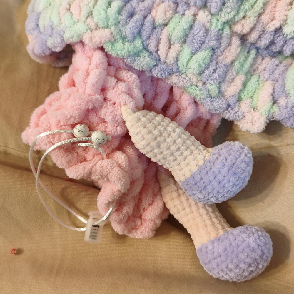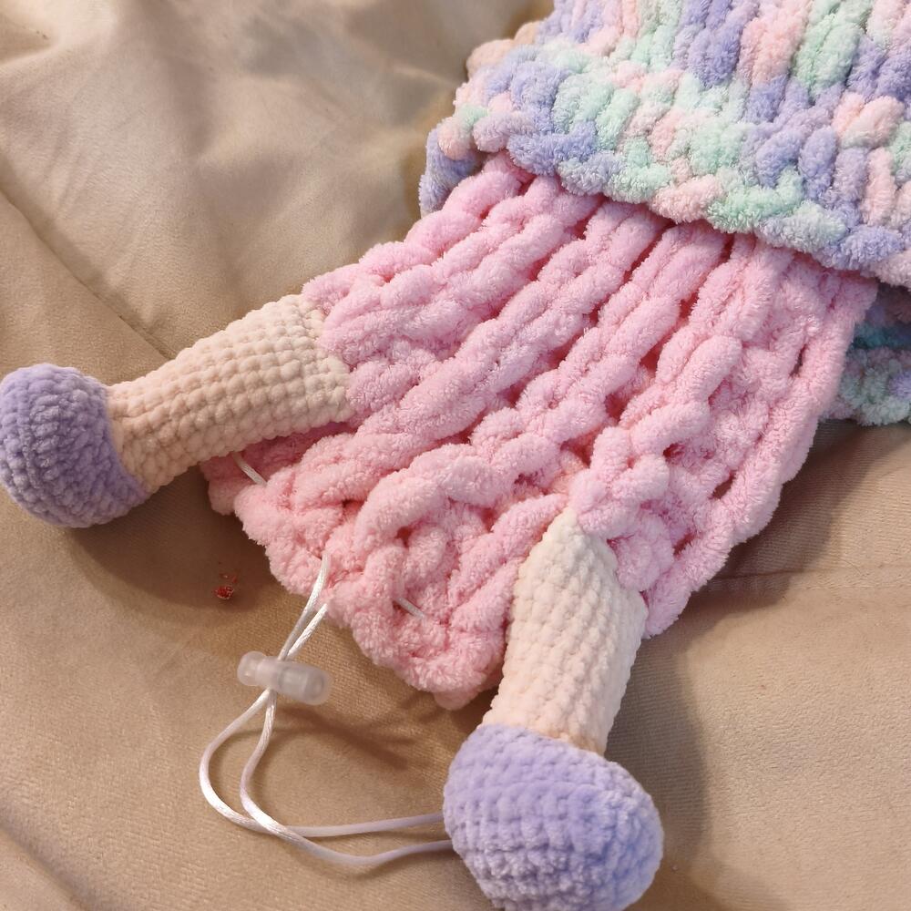 Пижамница! Что это такое? Это игрушка-мешок, которая в игровой форме приучит ребенка к порядку. Малыш с удовольствием будет убирать свою пижаму на место, а любимый герой ему в этом поможет! Такая игрушка не только станет полезным помощником для родителей, но и лучшим другом для малыша. Можно использовать как комфортер. Пряжа гипоаллергенна и подойдет даже для самых маленьких. Куколка с вышитыми глазками. Пластиковые бусинки с звёздочками. Пластиковая затяжка.