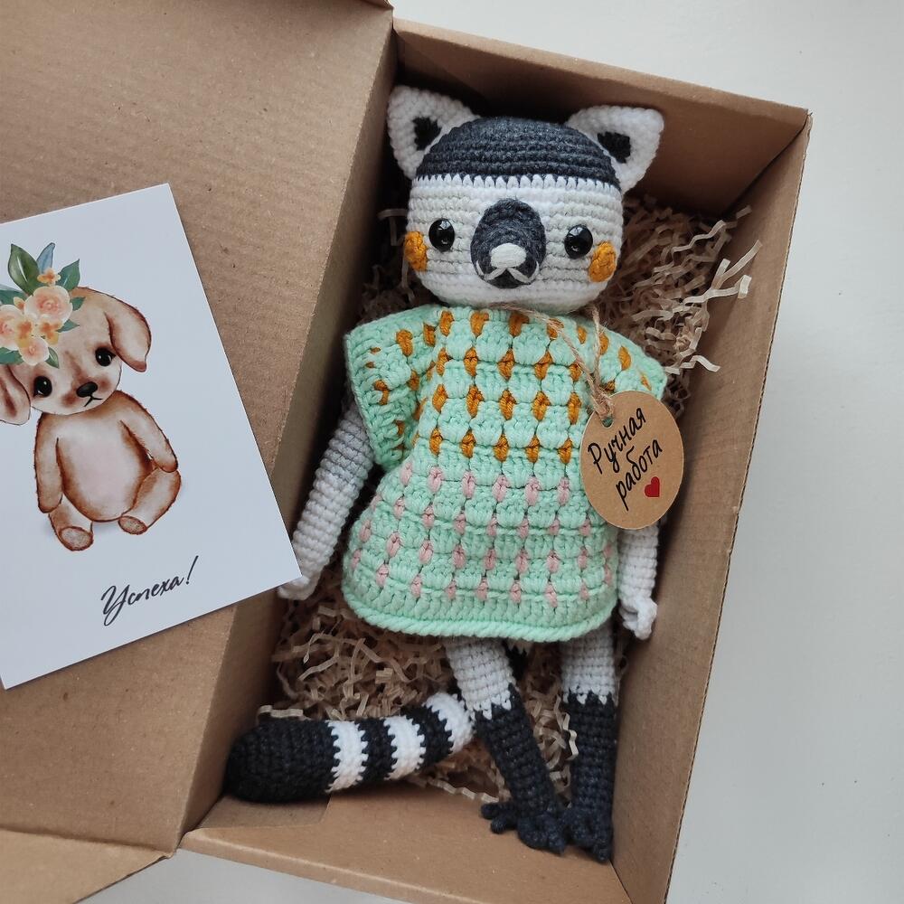 🌼 Вязаная игрушка ручной работы - Лемур 🌼 Связана в единственном экземпляре 🌼 Рост 23 см - без хвоста, 28 см - с хвостом 🌼 Одежда не снимается 🌼 Игрушка связана из качественной полухлопковой пряжи, набита холлофайбером 🌼 Сидит с опорой 🌼 Глазки на безопасном креплении 🌼 Допускается ручная стирка 🌼 Упакована в крафт-коробку, в комплекте бирка и маленькая открытка, которую Вы сами можете подписать Отлично подойдет для подарка как детям, так и взрослым девочкам :) Игрушка в наличии. Больше вязаных игрушек и кукол можно найти в магазине. Вязаная кукла, вязаный лемур, игрушка ручной работы, игрушка крючком, кукла крючком, мягкие игрушки, подарок детям, вязаный зайка, подарки детям, подарок на Новый год, детские игрушки, подарок для девочки, игрушка для девочки, подарок на день рождения, коллекционные игрушки, красивые детские игрушки