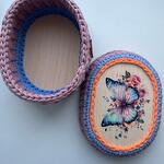 Интерьерная корзина ручной работы выполнена из хлопковых нитей. Корзина-шкатулка отлично подойдёт для хранения косметики, аксессуаров и любых других мелочей. Размер корзины 15*20см. Высота 11см.