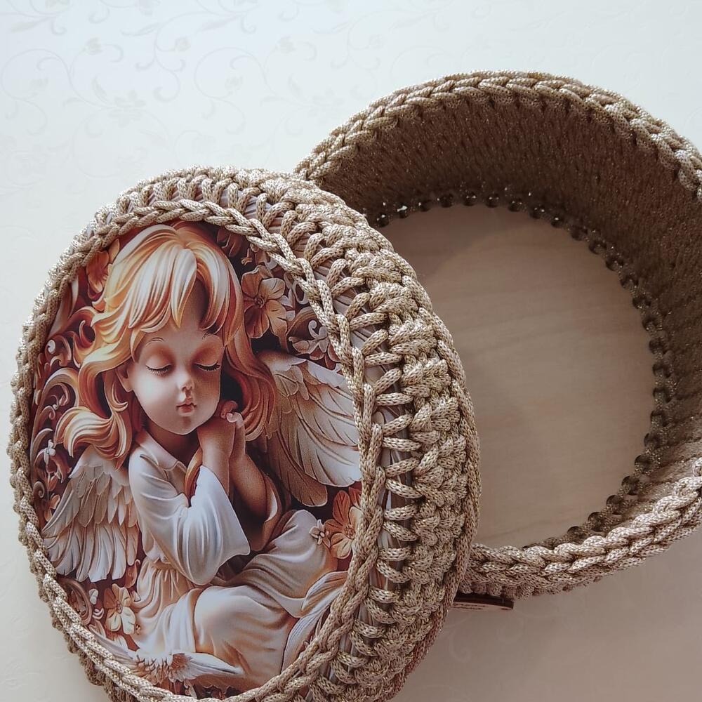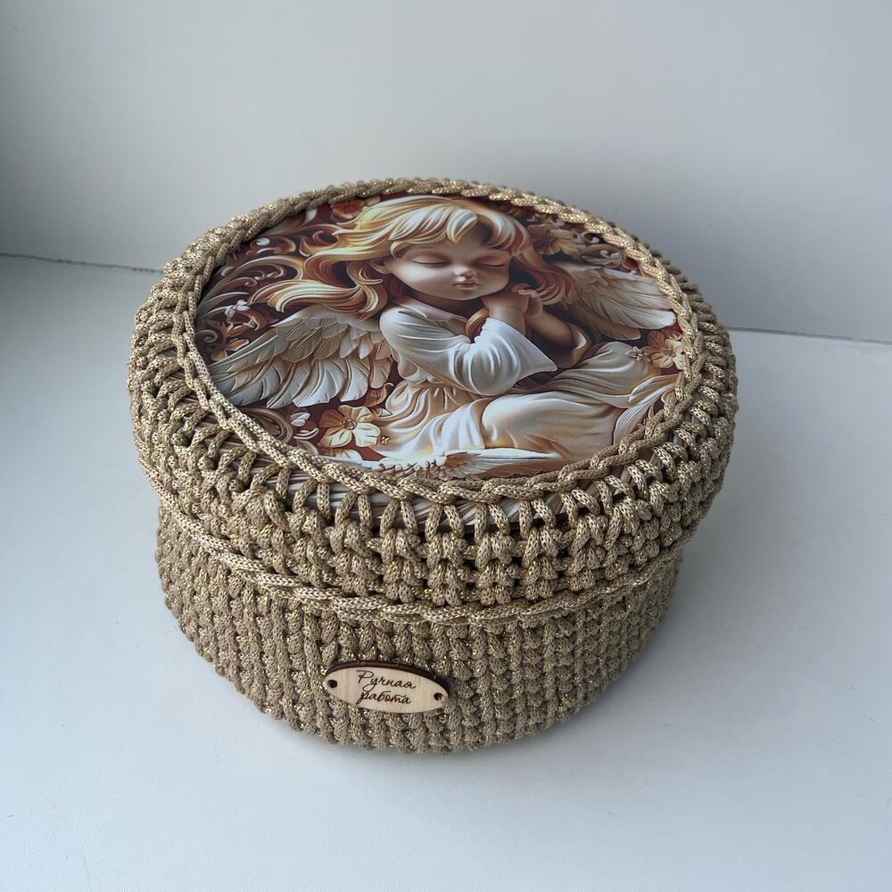 Корзина-шкатулка ручной работы из полипропиленового шнура. Размер: 20*20см. Высота 11см. Подойдёт для хранения косметики, аксессуаров и других мелочей.