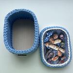 Интерьерная корзина ручной работы выполнена из хлопковых нитей. Корзина отлично подойдёт для хранения хлеба,печеньев и других мелочей. Размер корзины 15*20см. Высота 10см.