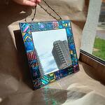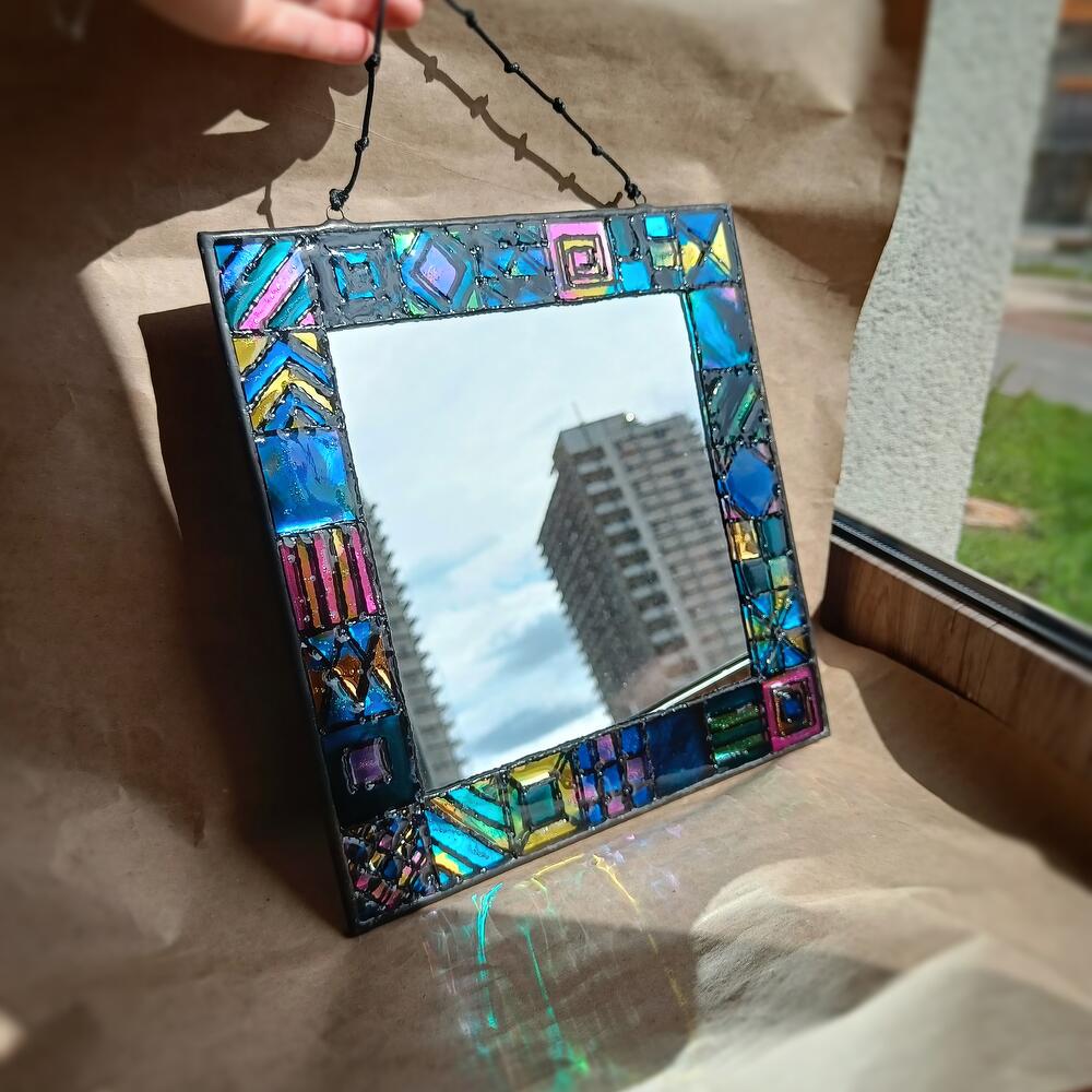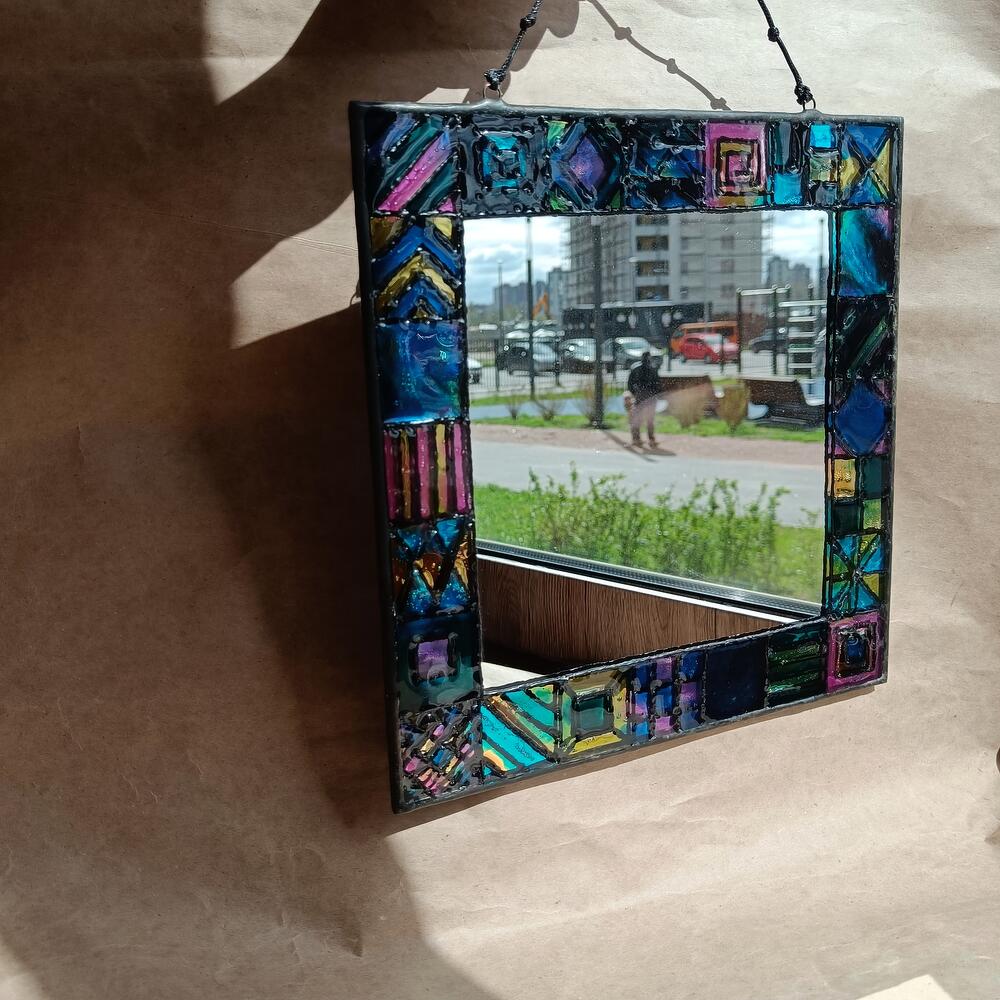 Настенное зеркало ручной работы с ярким контуром из эпоксидной смолы💙💚💜 Дополнит интерьер и добавит в него оригинальности Размер 27×27 см 🎁Необычный подарок