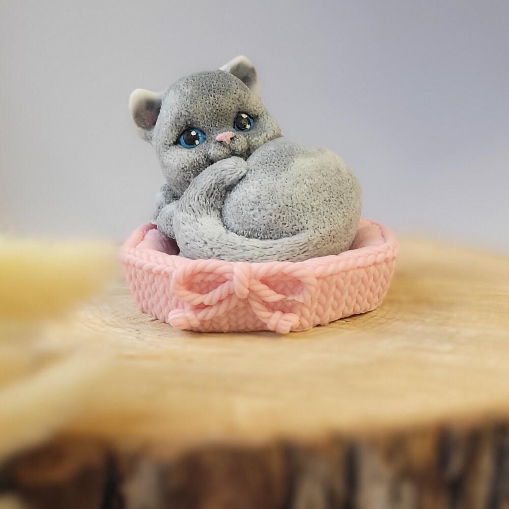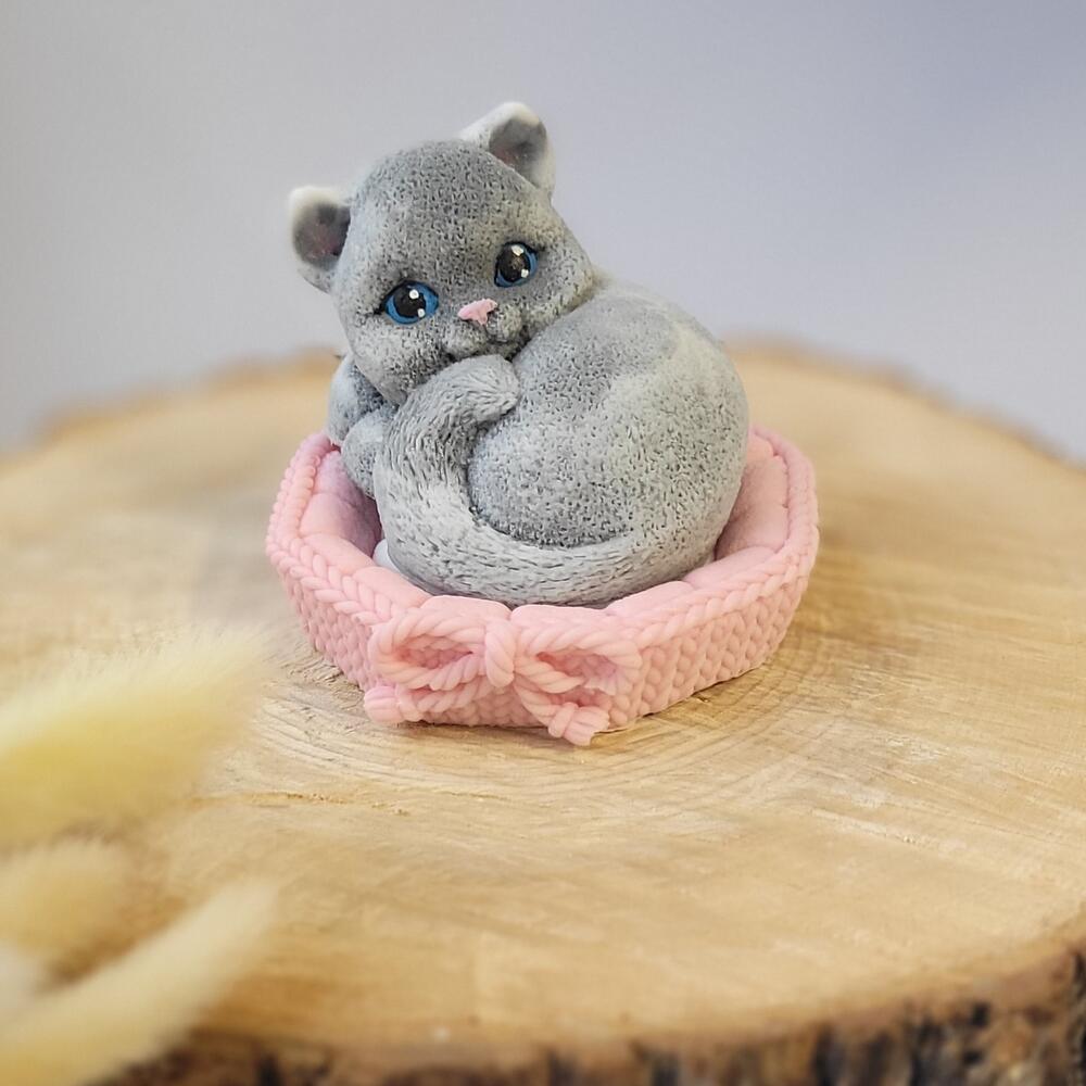 Сувенирное мыло кошечка на лежанке. Лежанка и кошечка 2кусочка мыла