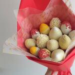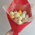 Клубничный букет - настоящая находка для тех, кто хочет чего-то оригинального. Они производят даже большее впечатление, чем обычный букет цветов. Для наших букетов мы используем только свежие высококачественные ингредиенты. Все букеты дополнительно упаковываем полностью в прозрачную слюду. Клубнику в шоколаде собираем по весу. Количество штук на фото - приблизительное и зависит от размера ягоды.