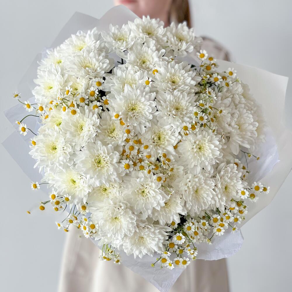 Большой букет из хризантем и ромашек